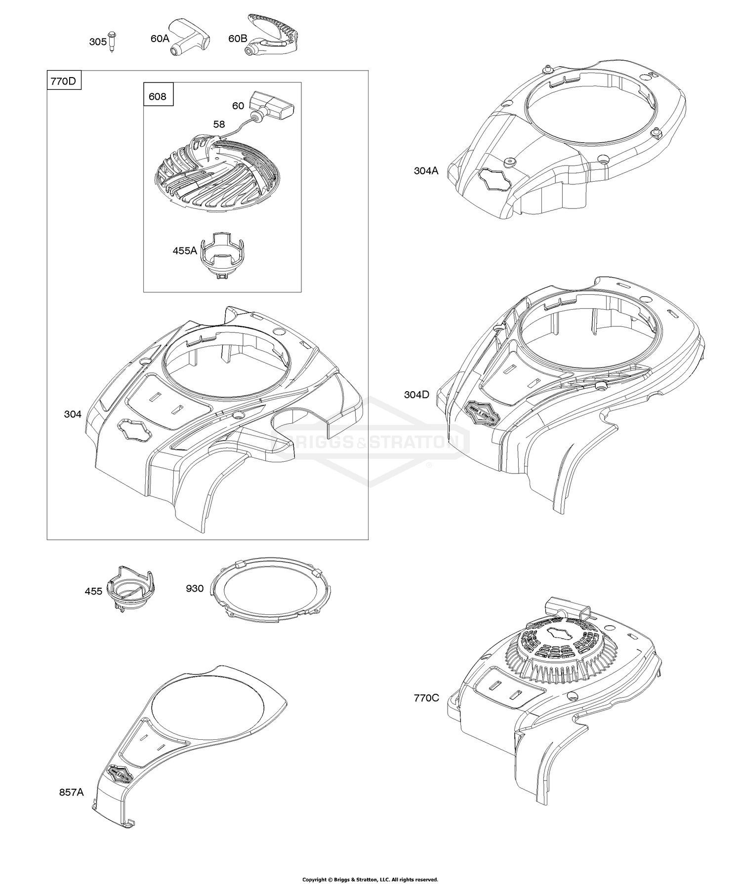 3 | 08P502-0013-H1 | C - Корпус нагнетателя, ручной стартер | Двигатель BRIGGS & STRATTON | Запчасти по России | Ремонт