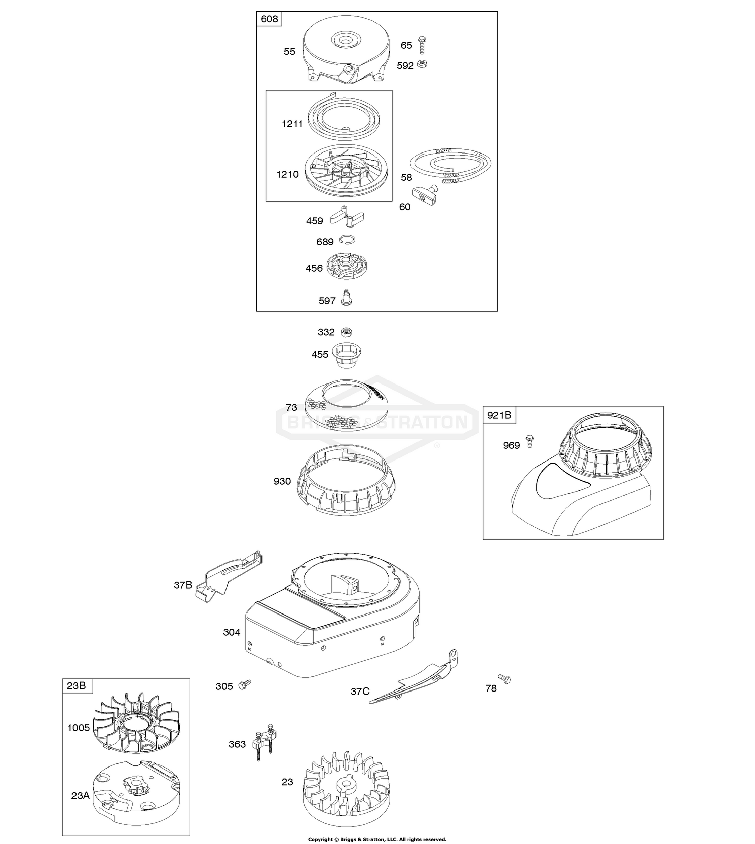 2 | 09T602-0128-B1 | B - Корпус нагнетателя/кожухи, маховик, ручной стартер | Двигатель BRIGGS & STRATTON | Запчасти по России | Ремонт