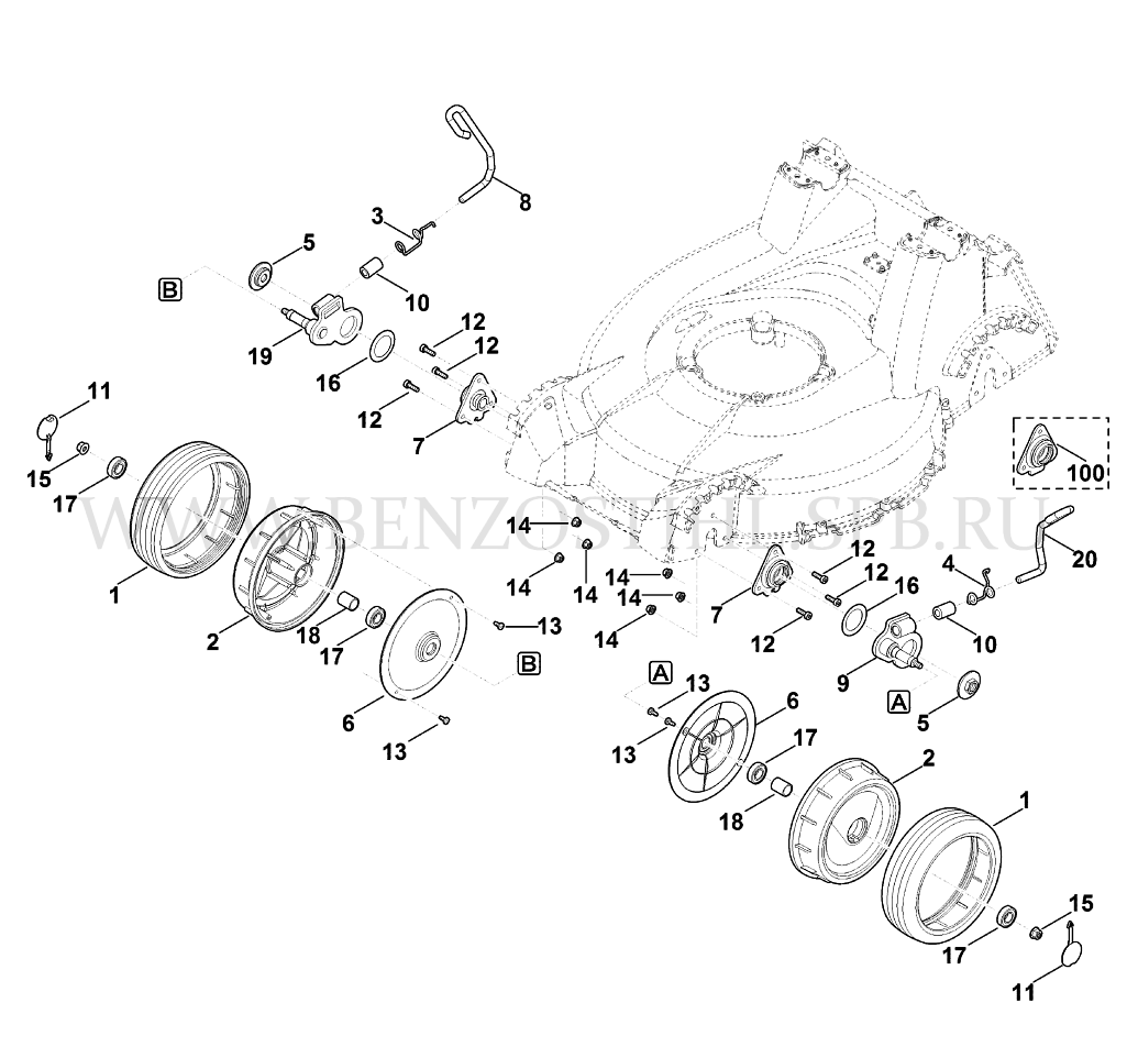 VIKING  Газонокосилка  MB  MB 756.0 YC  Регулировка высоты скашивания спереди, переднее колесо