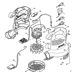 1 | SHE 71: Электродвигатель - Корпус вентилятора | SHE 71 | Воздуходув STIHL | Запчасти по России | Сервисное обслуживание