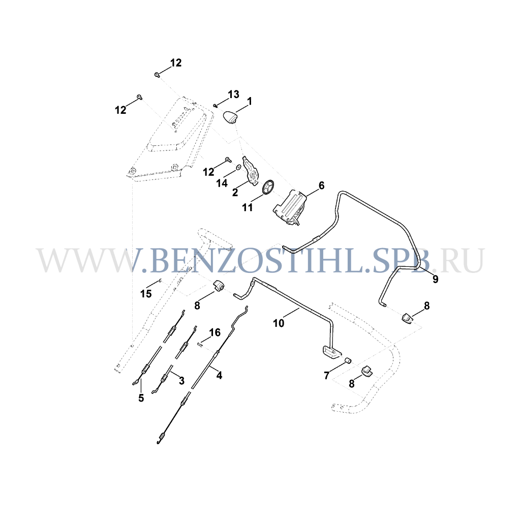 Газонокосилка (Stihl) RM 650.0 V Верхняя часть ведущей ручки ремонт, запчасти, сервисное обслуживание.