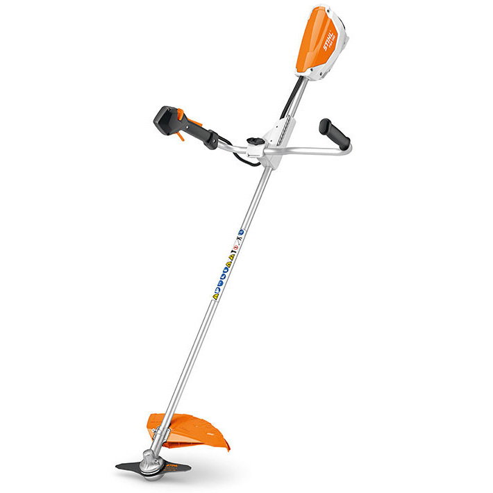 Аккумуляторная триммер Stihl FSA 130 для скашивания жесткой травы на больших площадях. Диаметр скашивания 260 мм, двухлопастное режущее полотно для травы, двуручная рукоятка, рукоятка управления с функцией частичной нагрузки ECOSPEED, двойной наплечный ремень, низкий уровень шума (использование наушников не требуется), веc 4,5 кг.