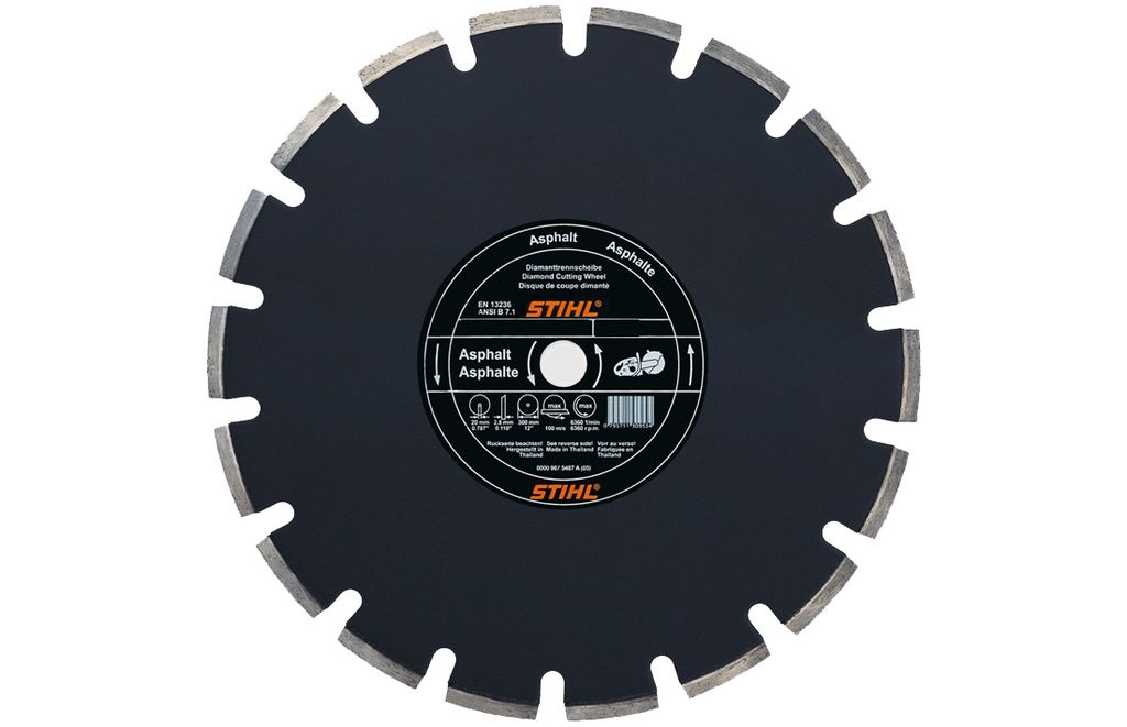 Для резки асфальта, свежего и абразивного бетона и песчаника. Сегменты высотой 10 мм с увеличенной производительностью резания во всех классах мощности, защитные сегменты, чёрное лакированное полотно.