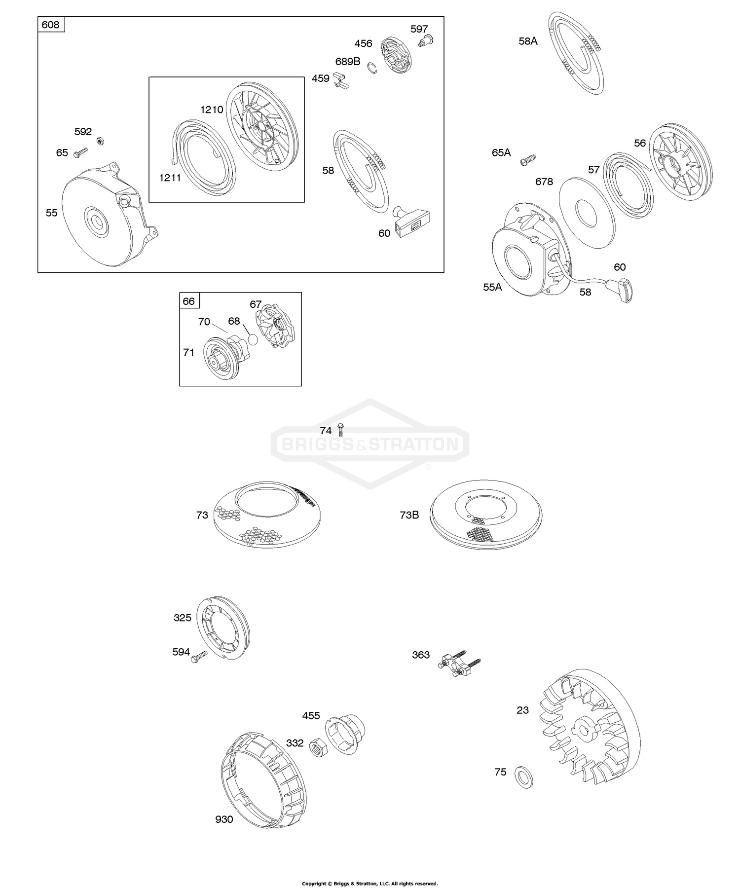 7 | 091212-1360-E1 | G - Маховик, ручной стартер | Двигатель BRIGGS & STRATTON | Запчасти по России | Ремонт