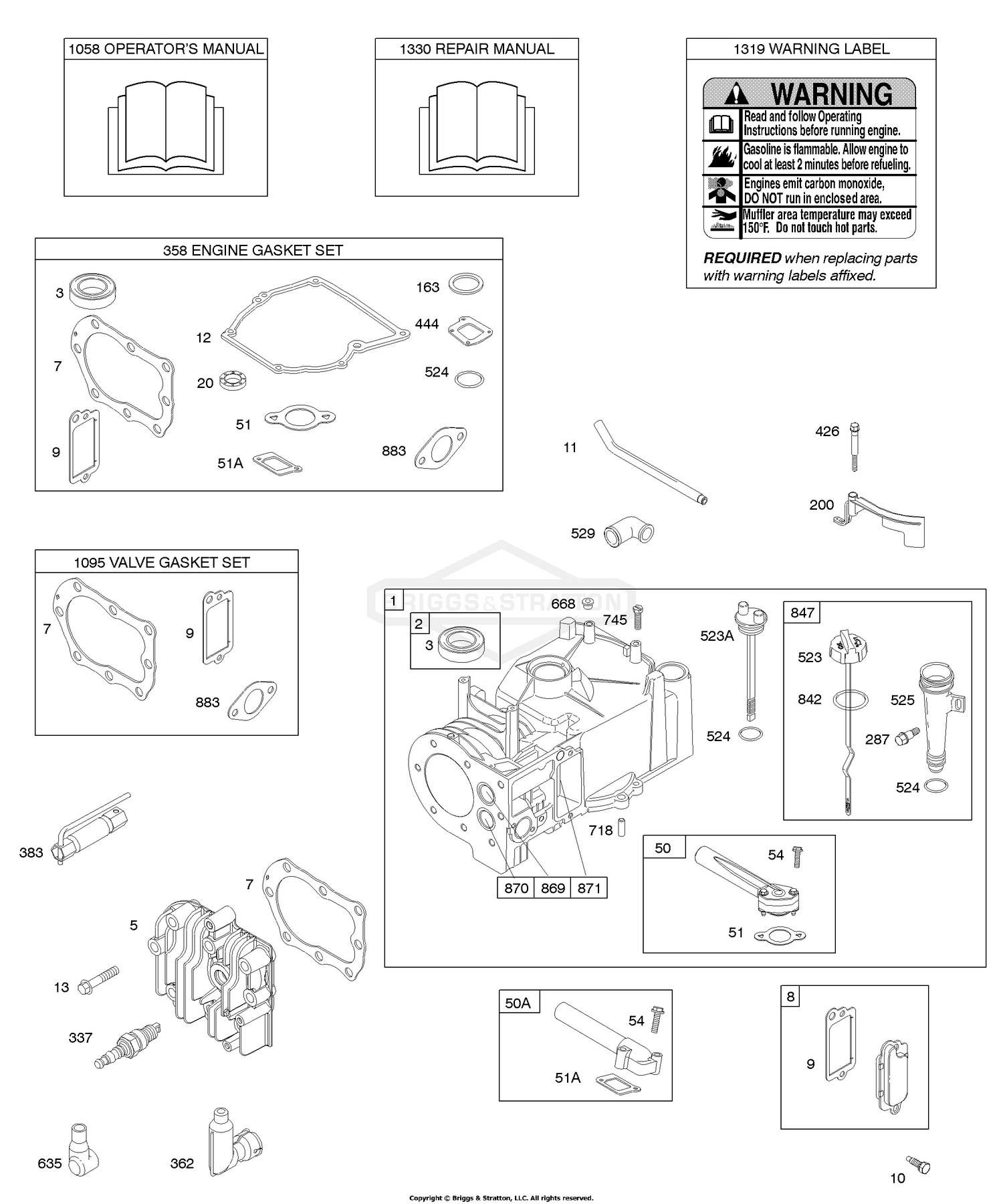 6 | 09D902-2096-B1 | F - Цилиндр, головка цилиндра, комплект прокладок двигателя, комплект клапанных прокладок | Двигатель BRIGGS & STRATTON | Запчасти по России | Ремонт