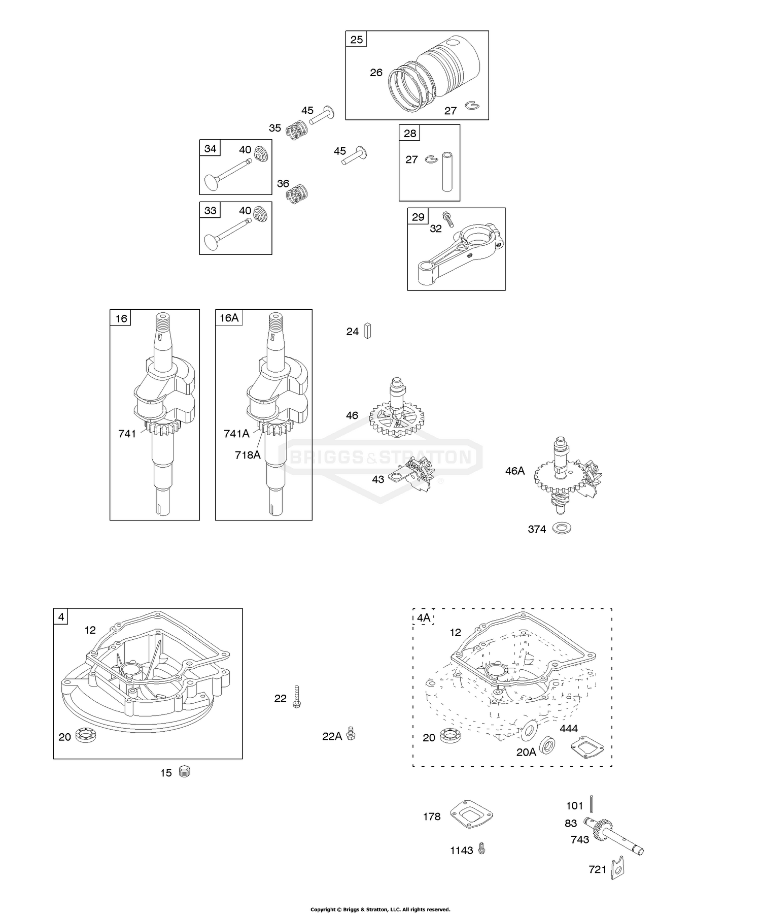 4 | 09D902-2096-B1 | D - Распределительный вал, крышка/поддон картера, коленчатый вал, поршень/кольца/шатун | Двигатель BRIGGS & STRATTON | Запчасти по России | Ремонт