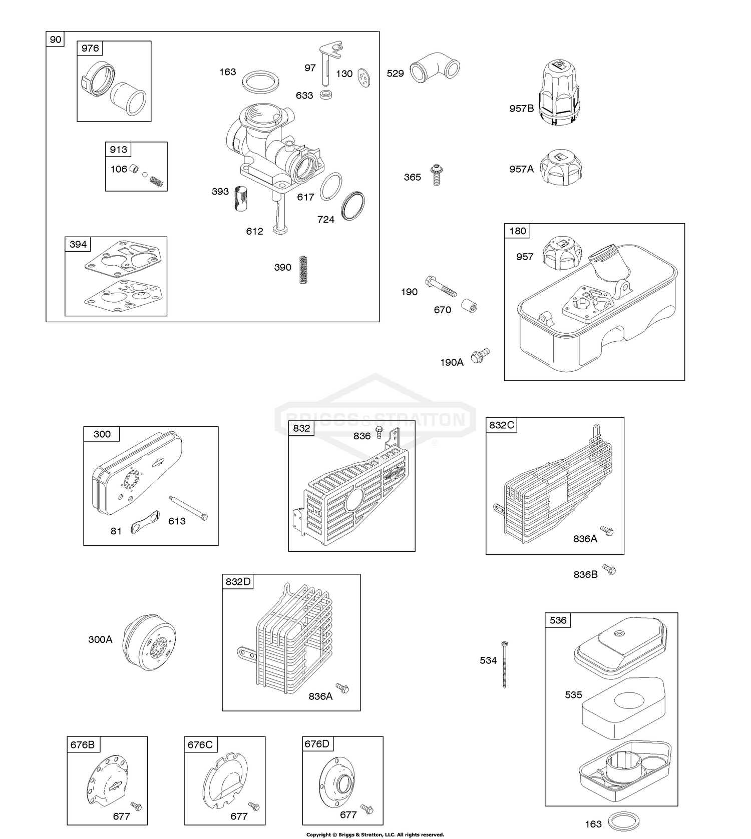 1 | 09T502-2236-B1 | A - Воздушный фильтр, карбюратор, выхлопная система, топливная система | Двигатель BRIGGS & STRATTON | Запчасти по России | Ремонт