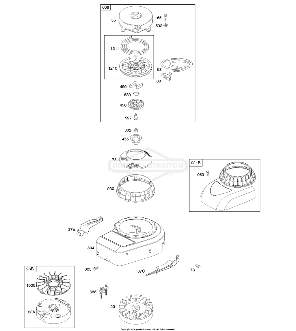 2 | 09T602-0127-H1 | B - Корпус нагнетателя/кожухи, маховик, ручной стартер | Двигатель BRIGGS & STRATTON | Запчасти по России | Ремонт
