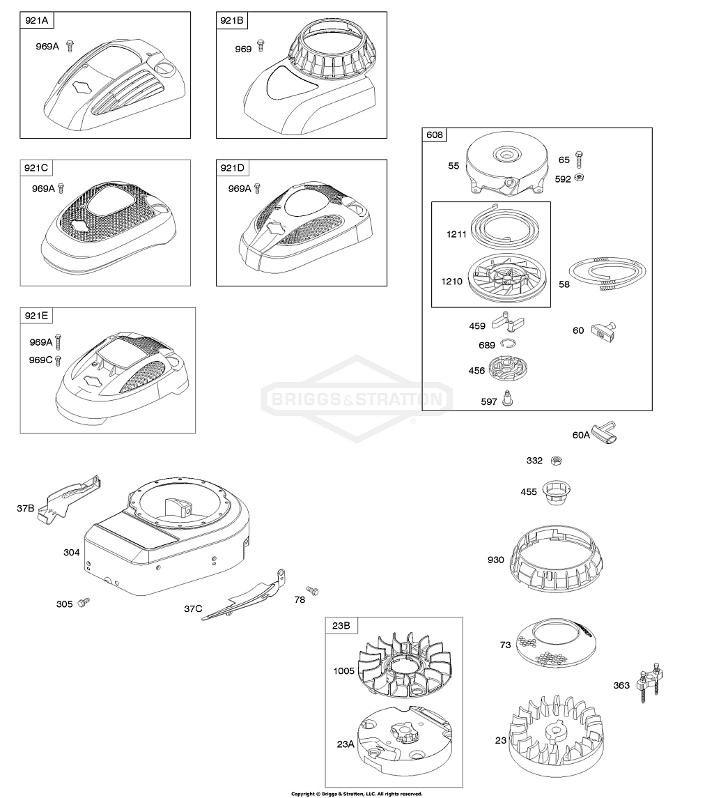 2 | 10T802-0180-H1 | B - Корпус нагнетателя/кожухи, маховик, ручной стартер | Двигатель BRIGGS & STRATTON | Запчасти по России | Ремонт