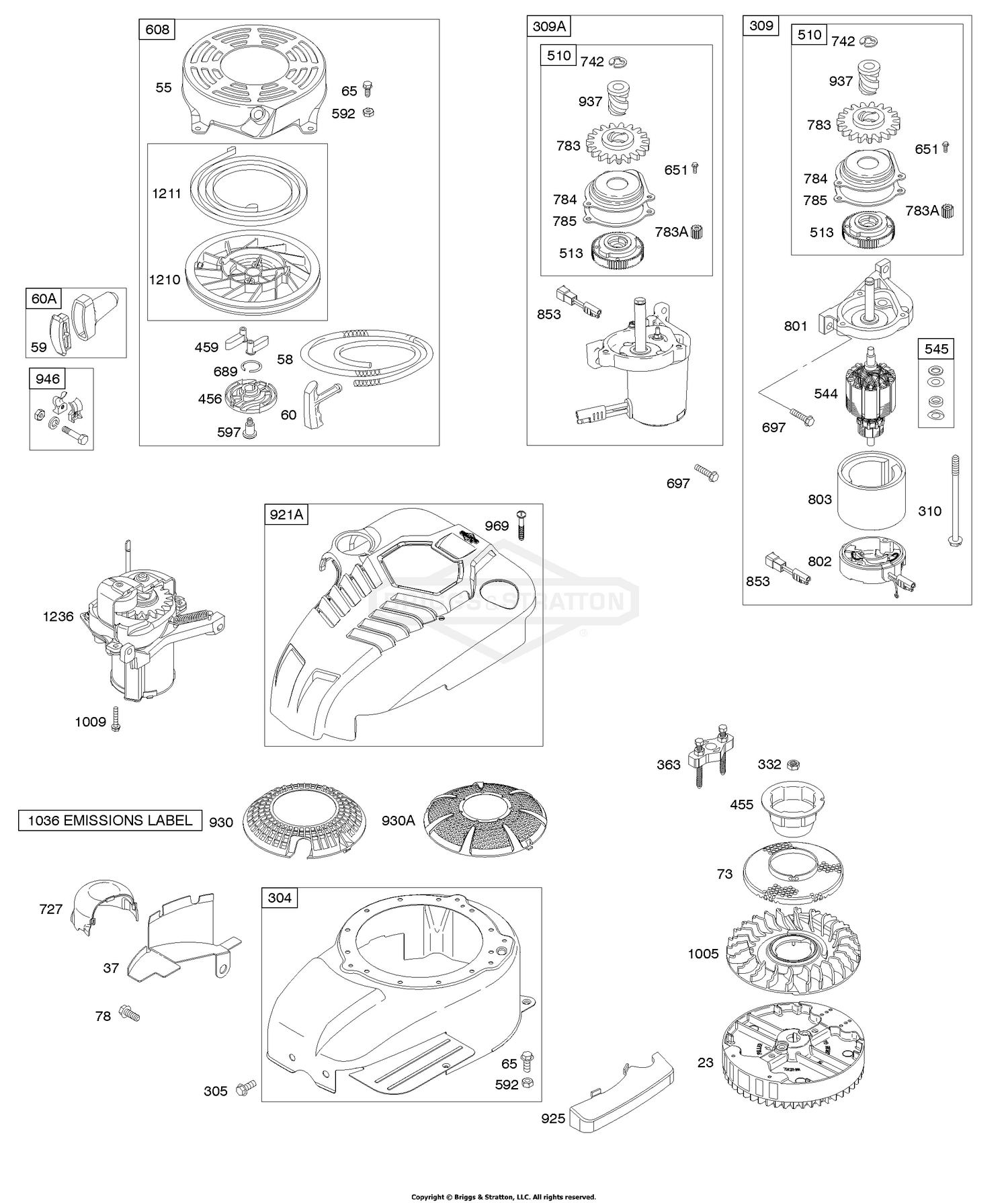 2 | 121602-0379-E1 | B - Корпус нагнетателя/кожухи, электрический стартер, маховик, ручной стартер | Двигатель BRIGGS & STRATTON | Запчасти по России | Ремонт