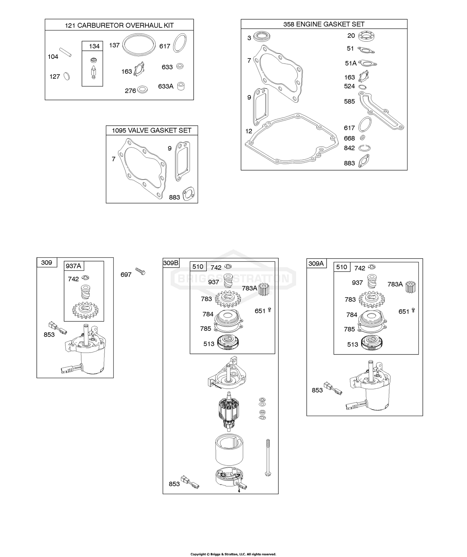 6 | 126T02-0198-B1 | F - Электрический стартер, комплекты прокладок | Двигатель BRIGGS & STRATTON | Запчасти по России | Ремонт