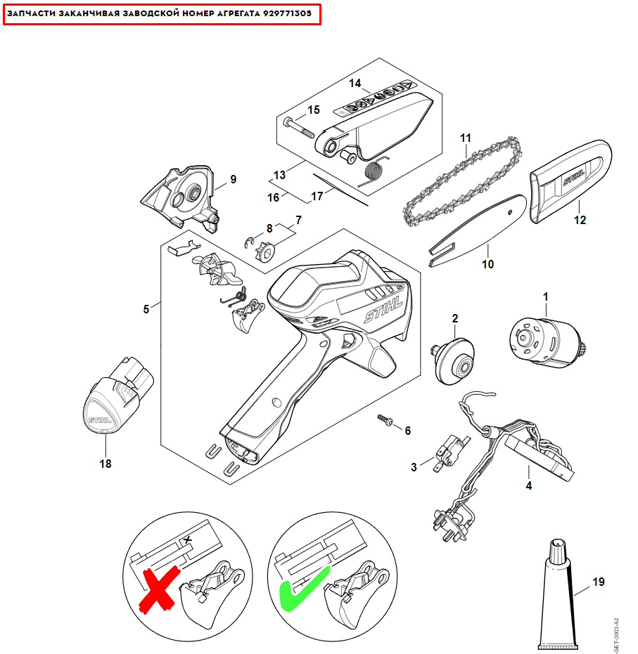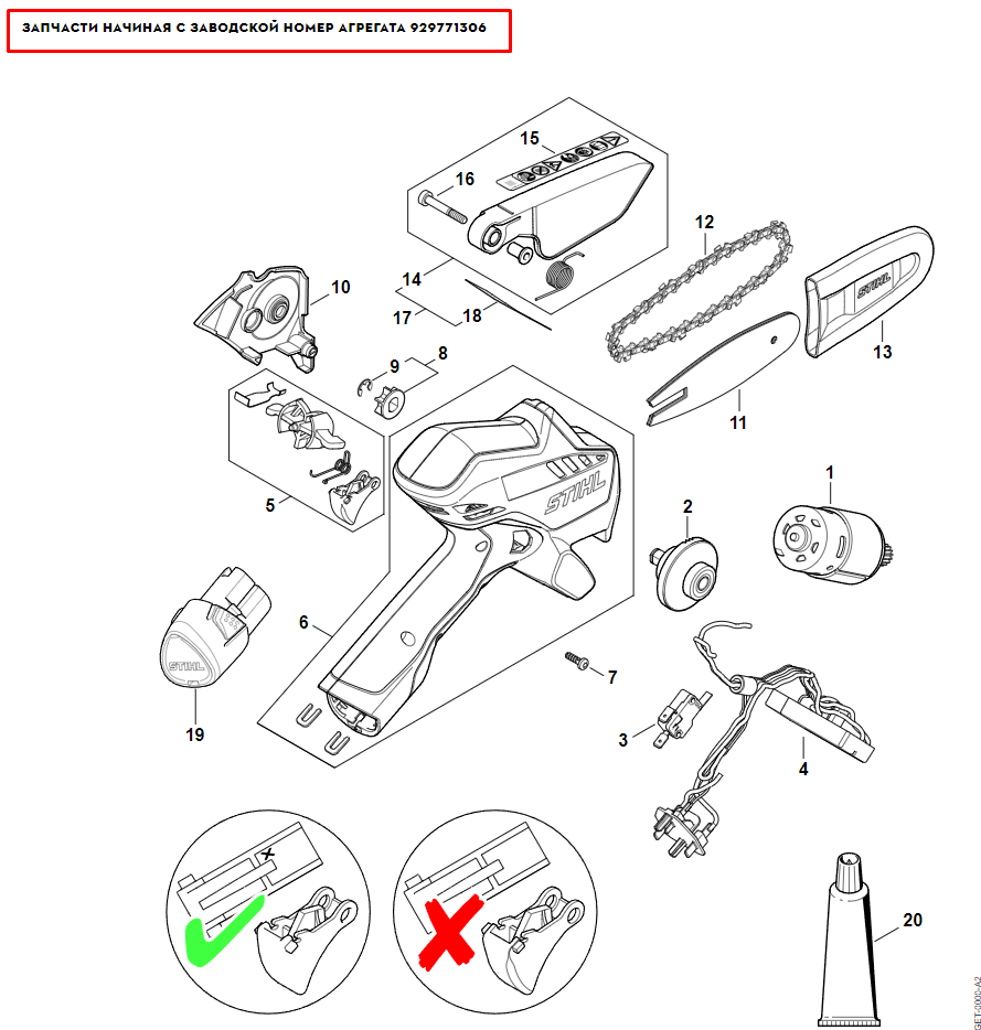 1 | Запчасти Начиная с Заводской номер агрегата 929771306 | GTA 26 | Аккумуляторная мини-пила STIHL | Запчасти по России | Сервисное обслуживание