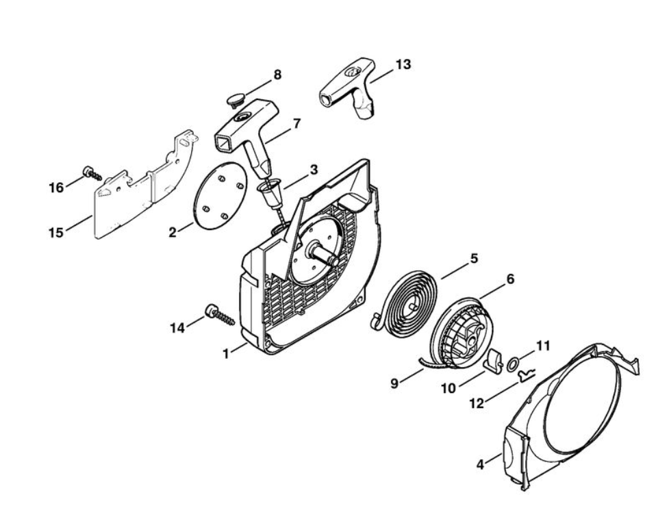8 | Корпус вентилятора с пусковым устройством | MS 230 | Бензопила STIHL | Запчасти по России | Сервисное обслуживание