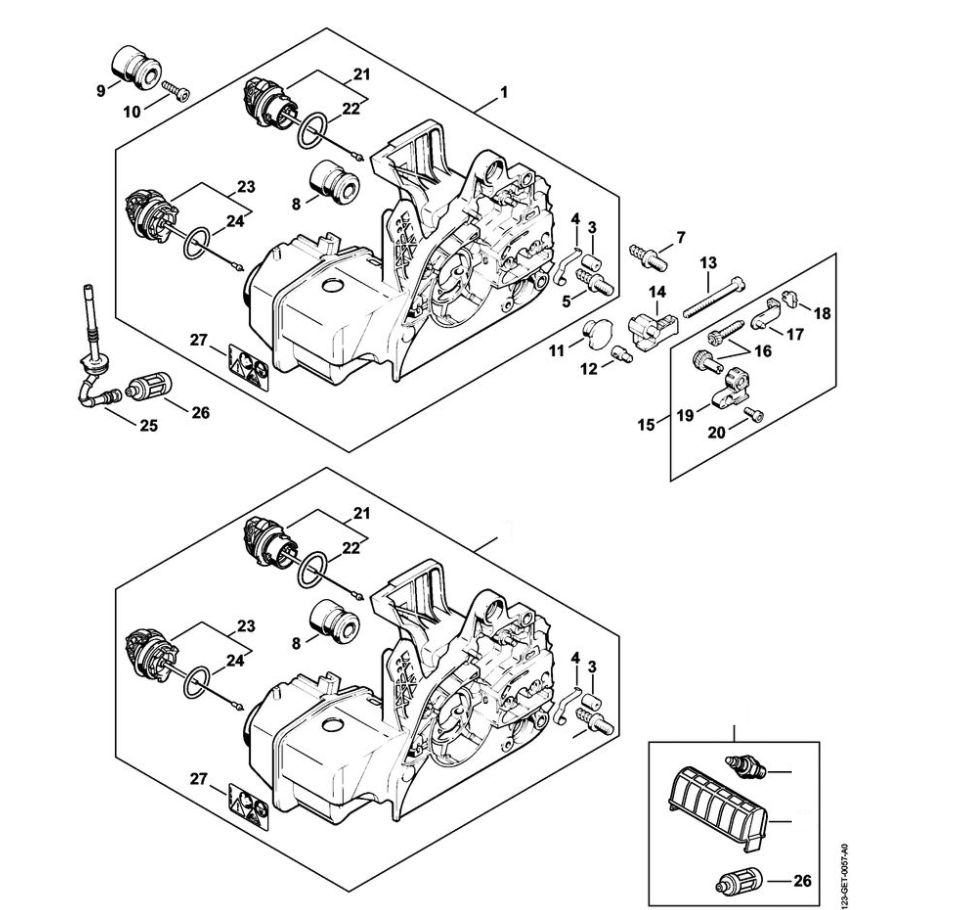 1 | Приводной механизм | MS 230 | Бензопила STIHL | Запчасти по России | Сервисное обслуживание