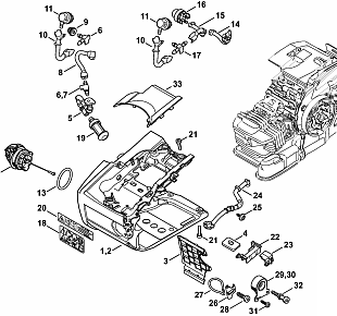 Воздушный фильтр, Крышка коробки карбюратора MS 201 T, MS 201 TC