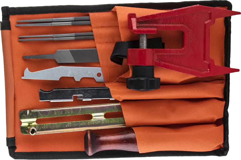 Заточной набор для бензопилы | 10 в 1 (нап 4,0х2шт, 4,8х2шт, пл.нап, шаблон, планка, ручка, скребок, струбцина) |