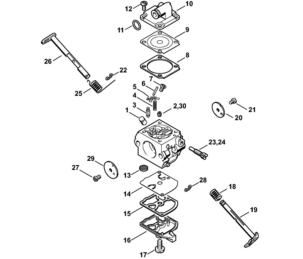 Бензопила Stihl MS 180 C-BE  Карбюратор C1Q-S57, C1Q-S57, C1Q-S264