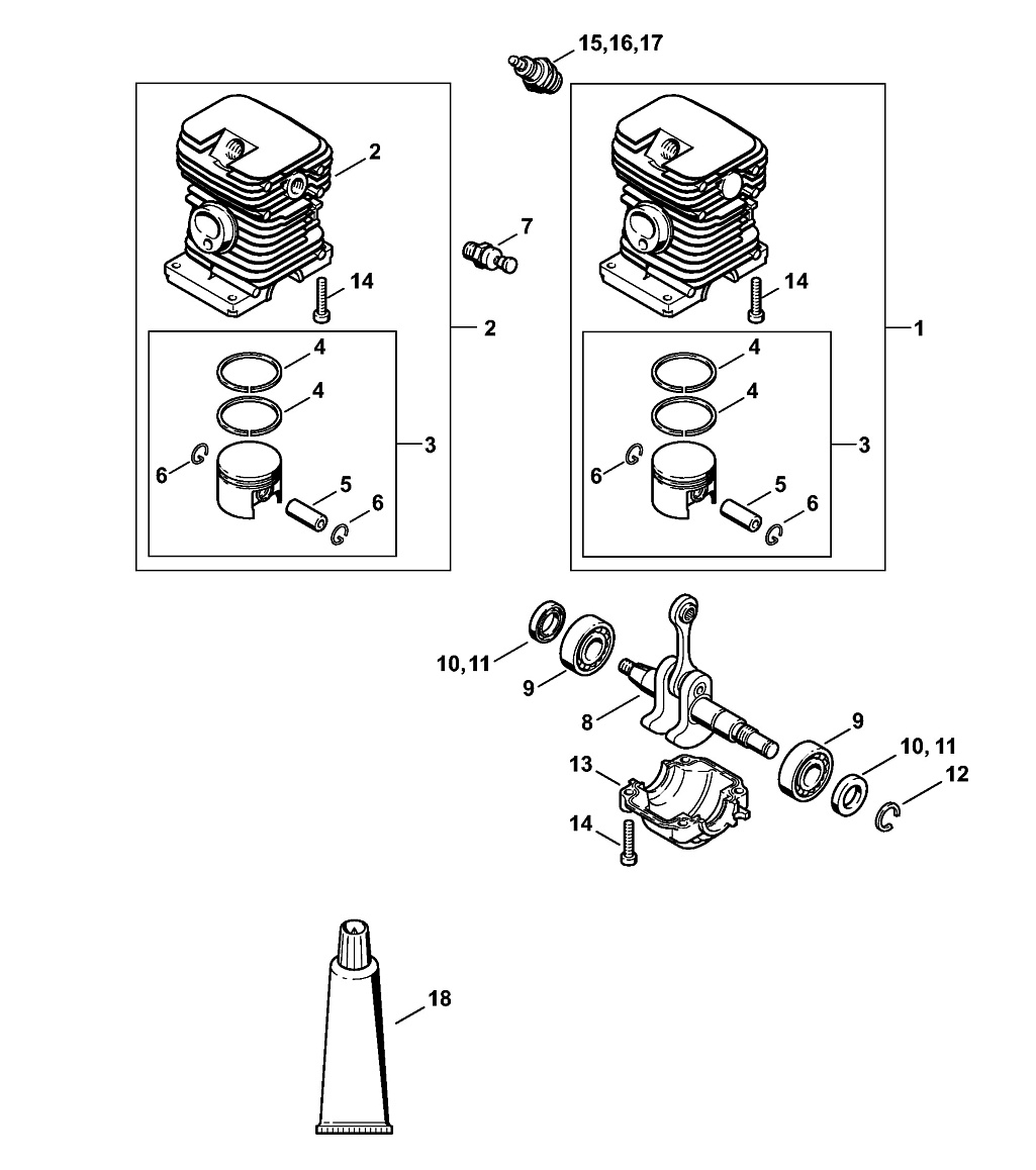 Бензопила Stihl MS 180 C-BE  Цилиндр - поршневая группа