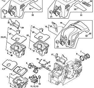 Бензопила Stihl MS 180 C-BE Воздушный фильтр - Кожух