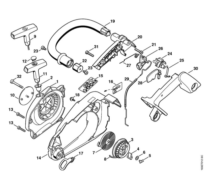 5 | Корпус вентилятора - Трубчатая рукоятка | Бензиномоторные пилы MS 190 T STIHL | Запчасти по России | Ремонт
