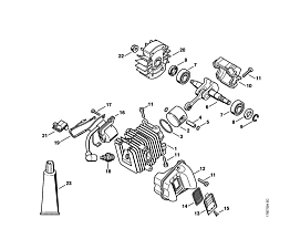 1 | Цилиндр с поршнем - Система зажигания | Бензиномоторные пилы MS 190 T STIHL | Запчасти по России | Ремонт