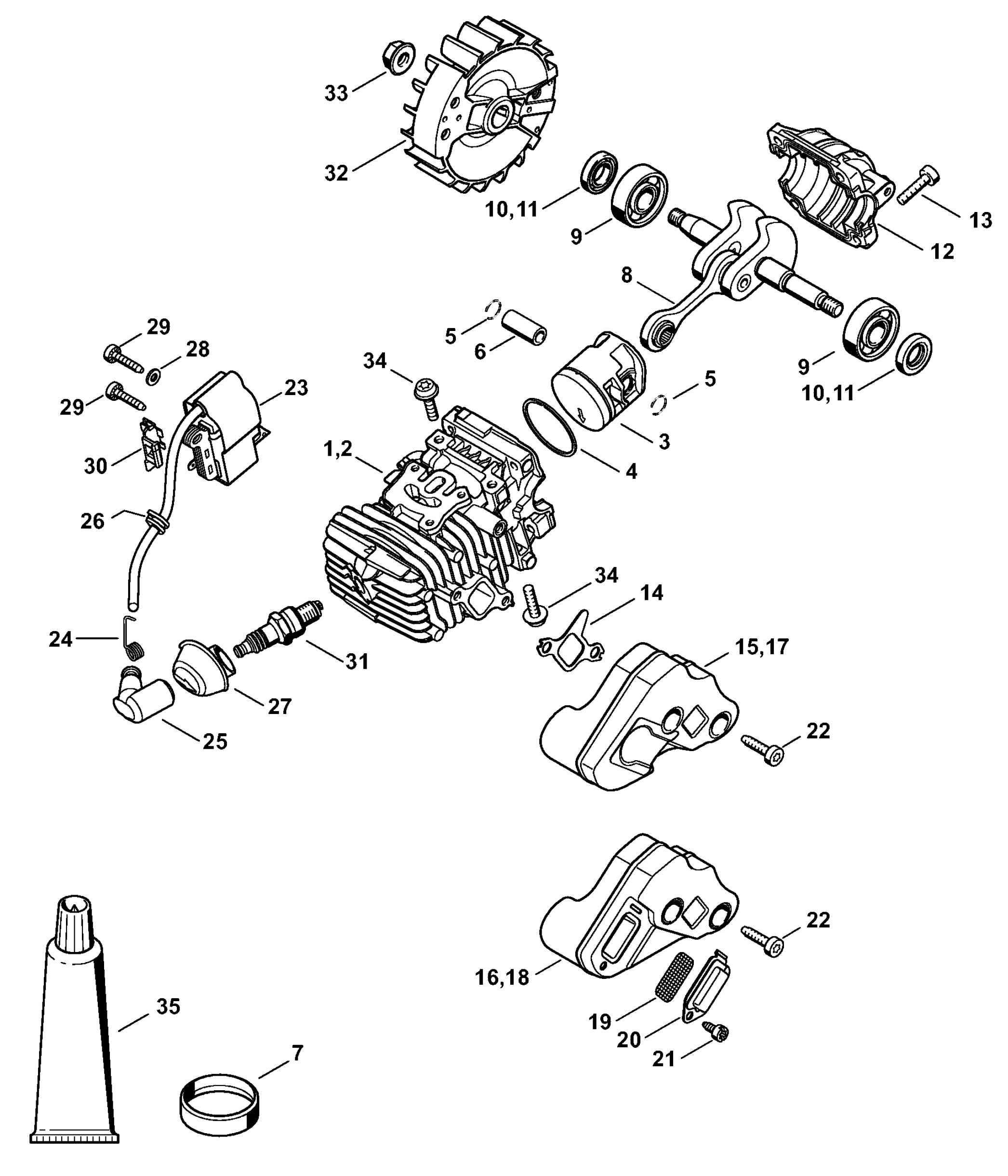 Цилиндр с поршнем - Система зажигания MS 193 C