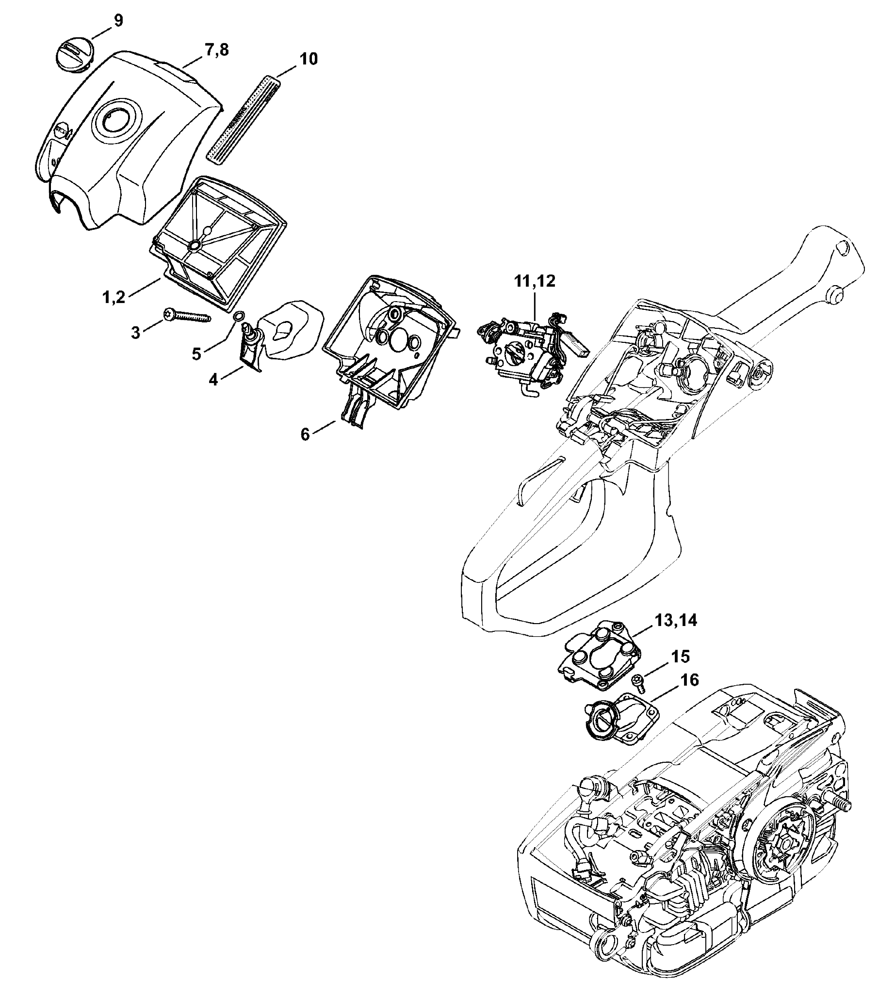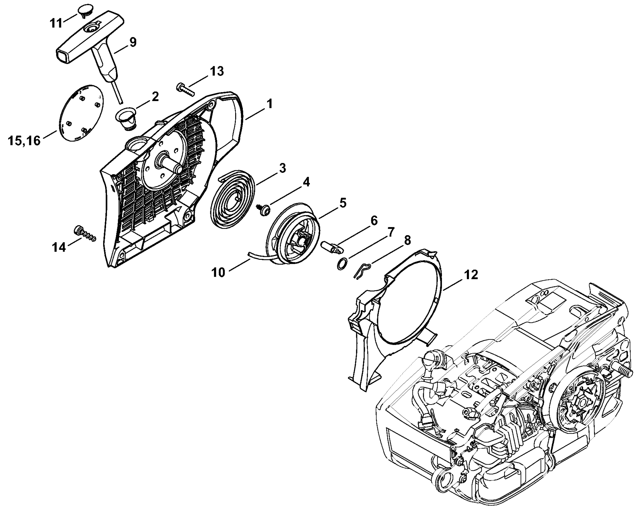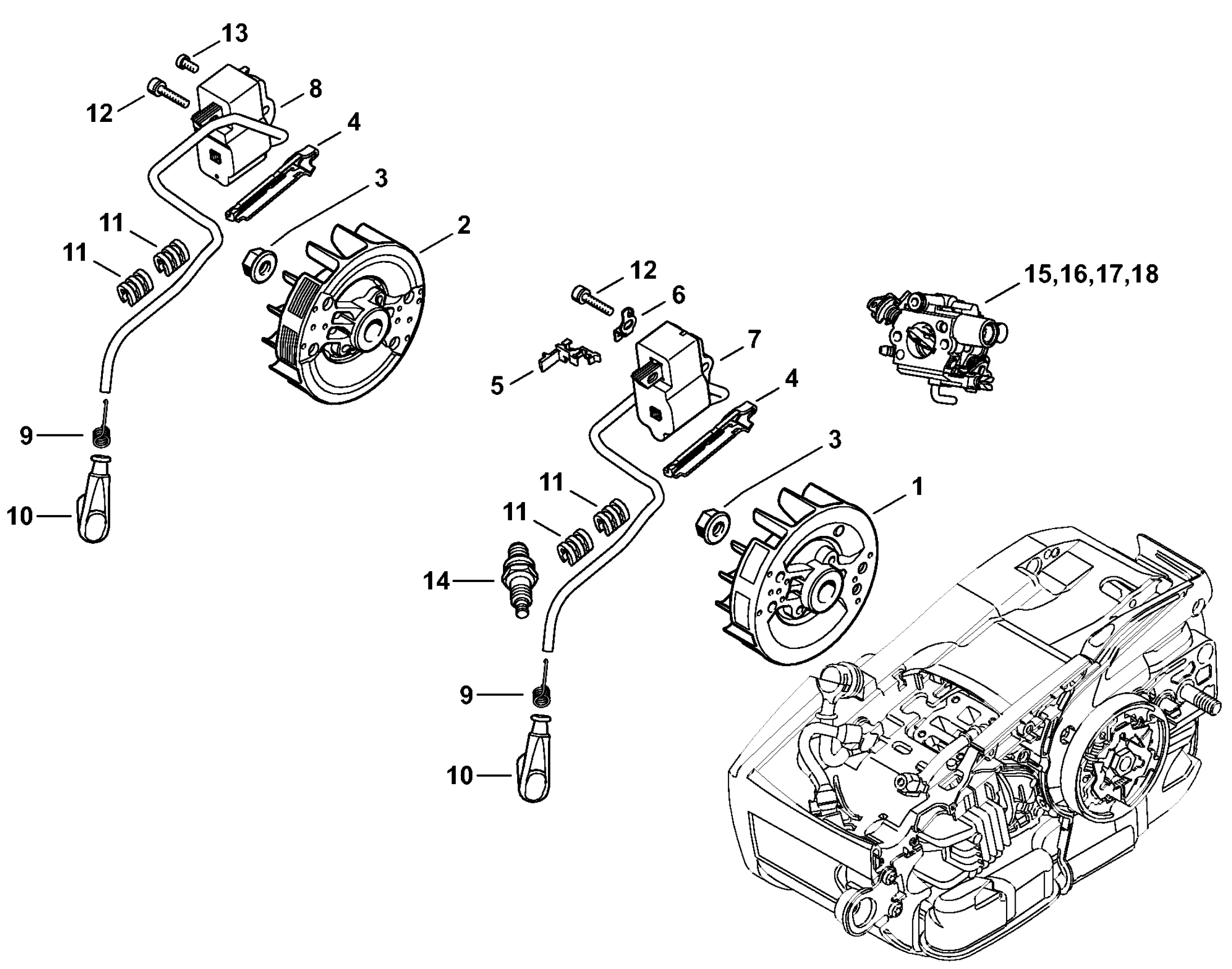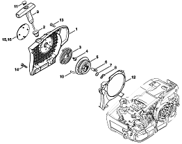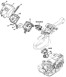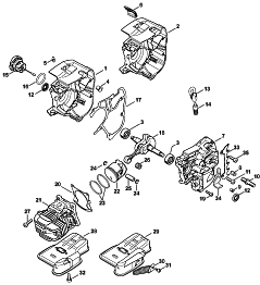 Картер - Поршневая группа - Глушитель MS 201, MS 201 C