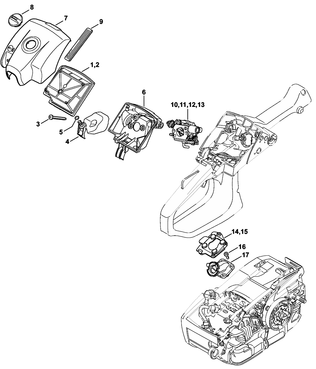 Воздушный фильтр, Карбюратор MS 201, MS 201 C
