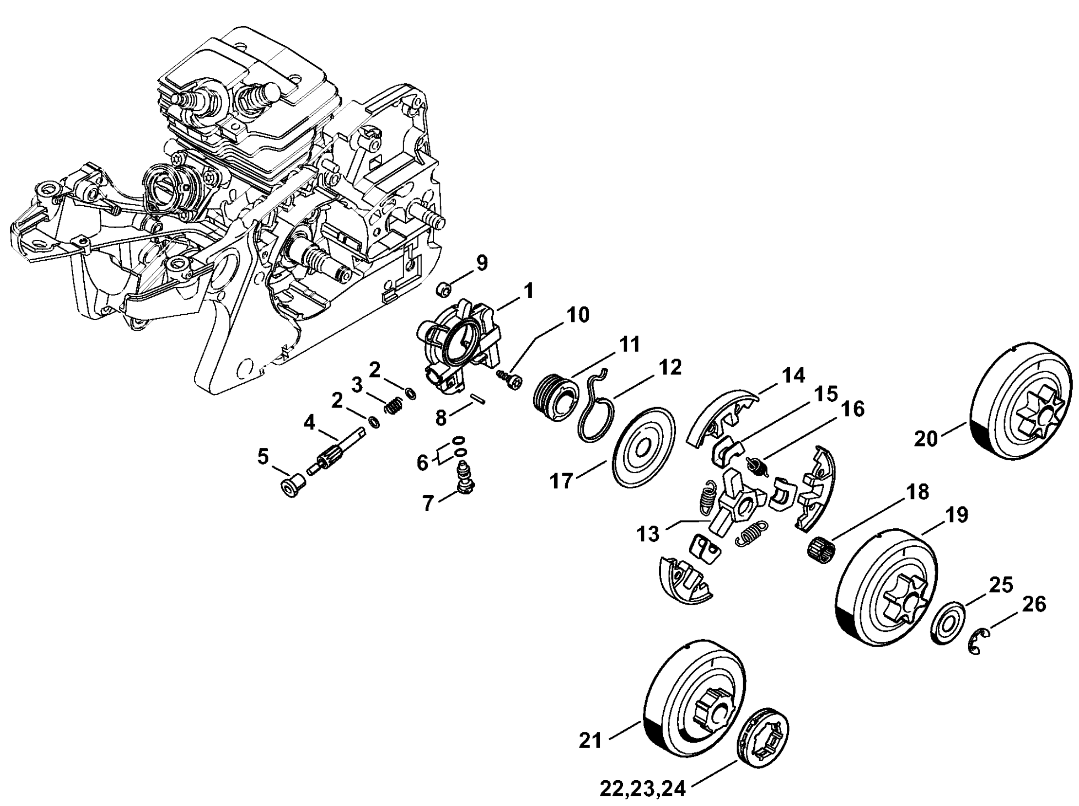 Mасляный насос - Муфта сцепления, ведущая звездочка MS 241 C