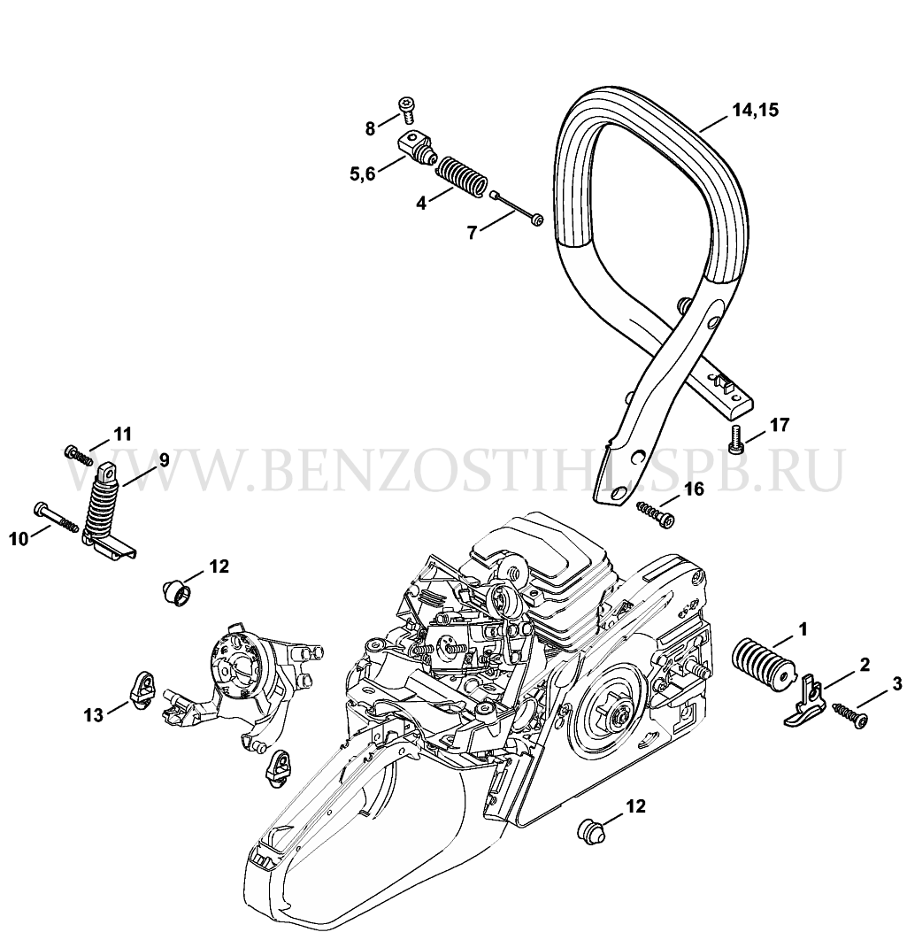 MS 251 Антивибрационная система - Трубчатая рукоятка ремонт, запчасти, сервисное обслуживание.