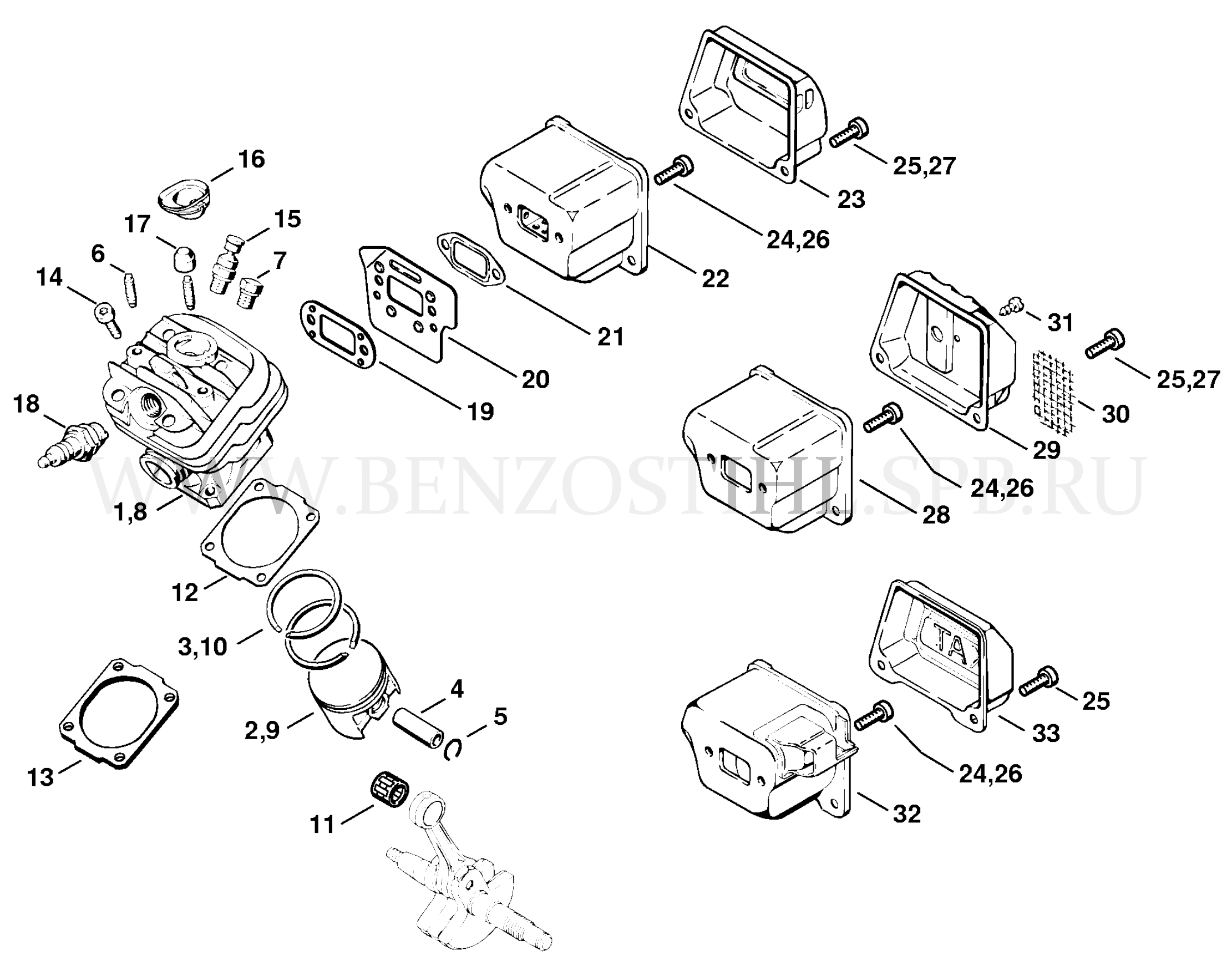 Цилиндр, поршень - Глушитель MS 260, MS 260 C