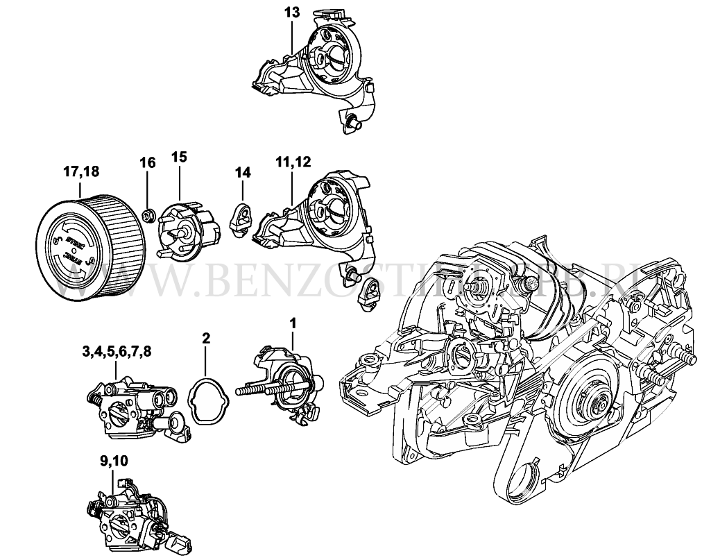 MS 261 C-M VW  Воздушный фильтр - Карбюратор