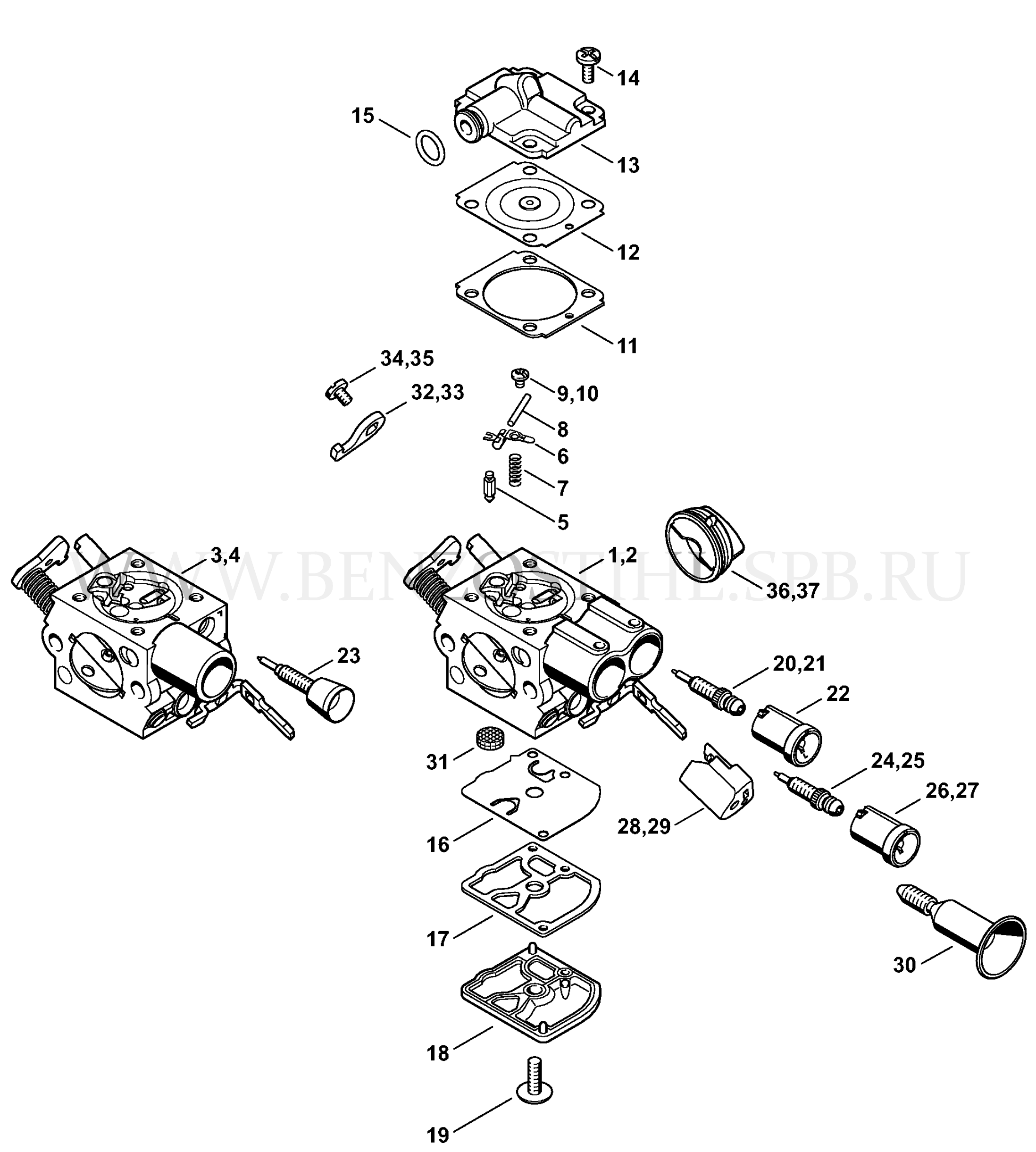 MS 271 Карбюратор C1Q-S246, C1Q-S252, C1Q-S211, C1Q-S178D