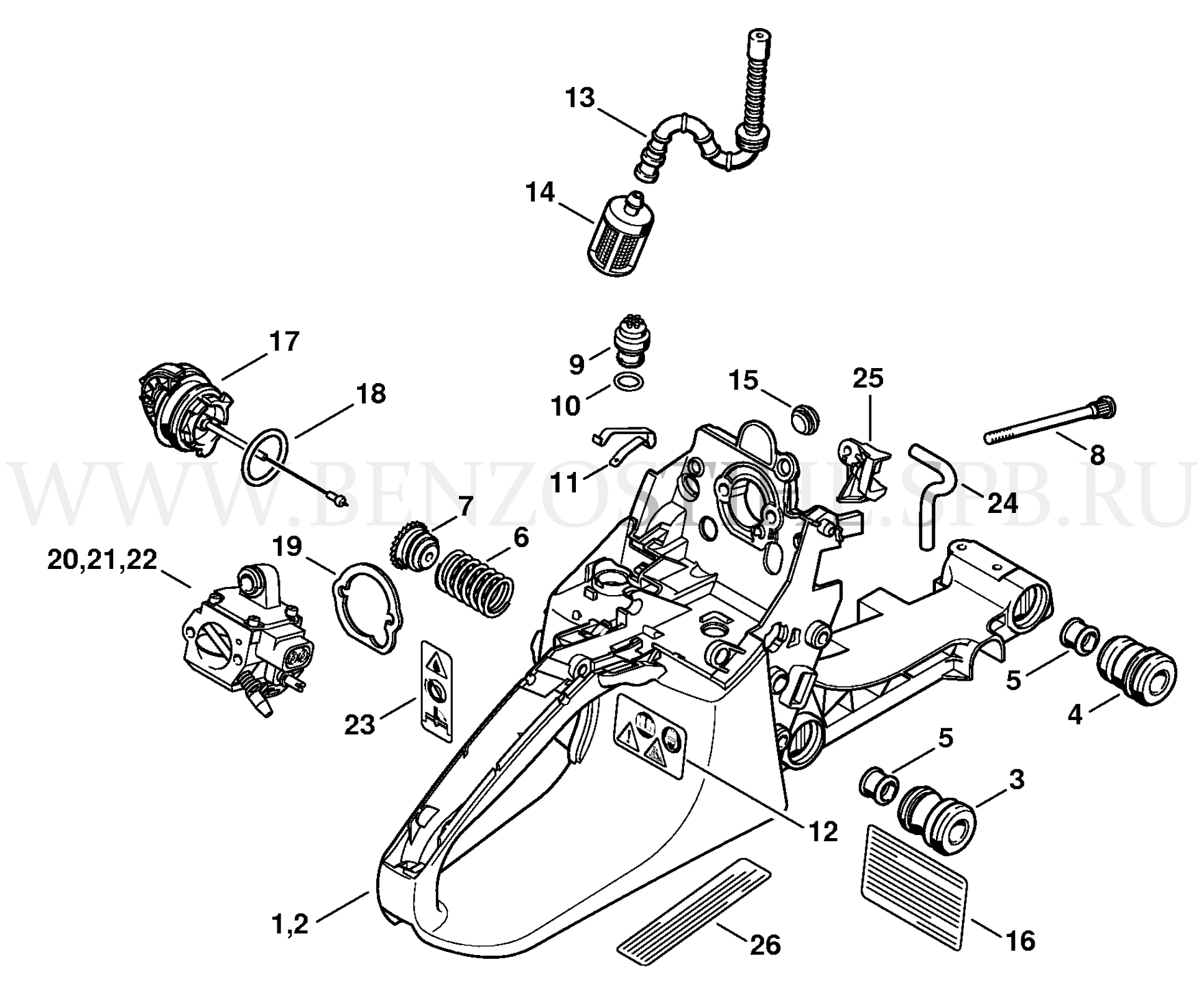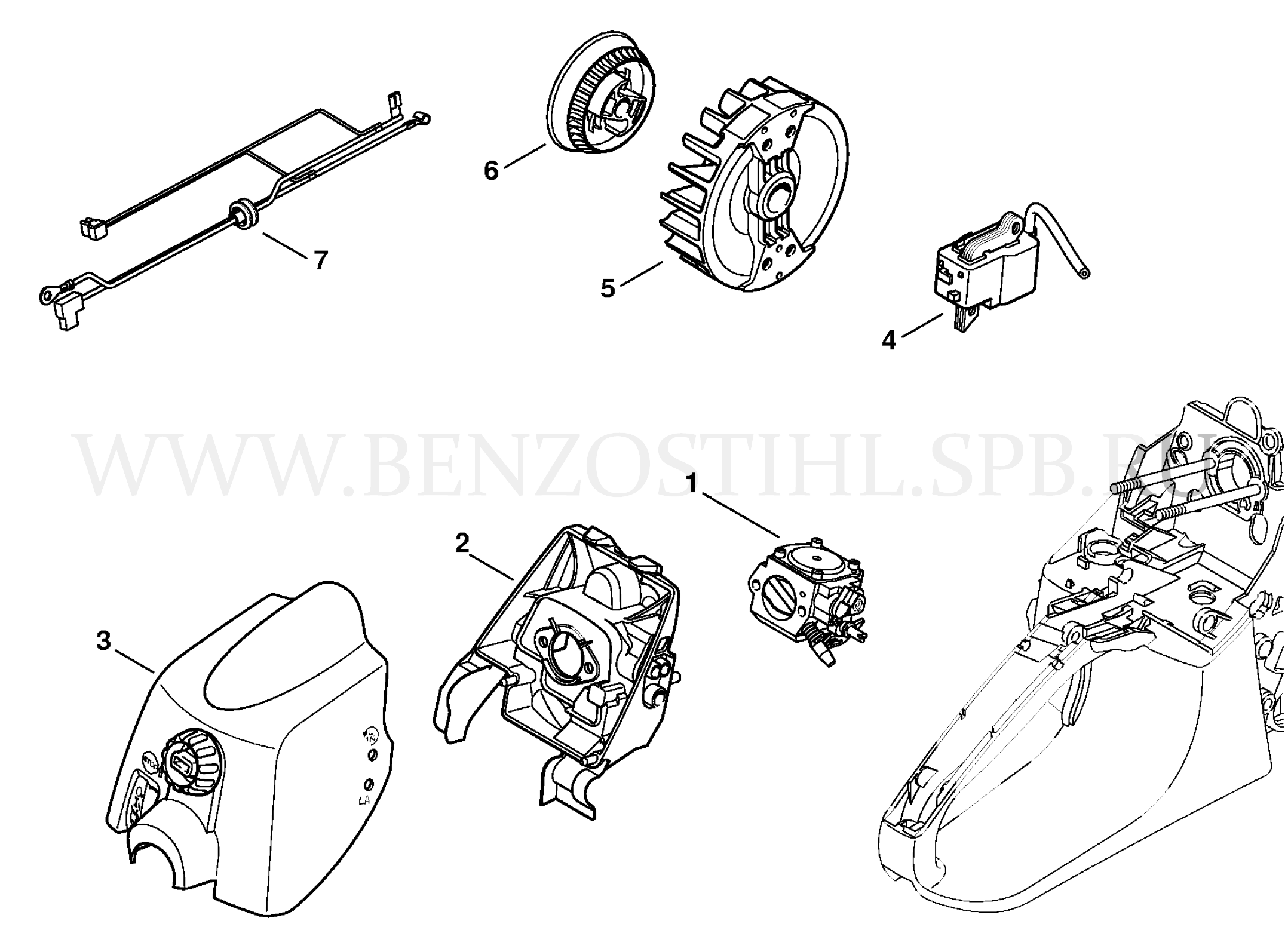 MS 280 I Кожух - Воздушный фильтр - Карбюратор