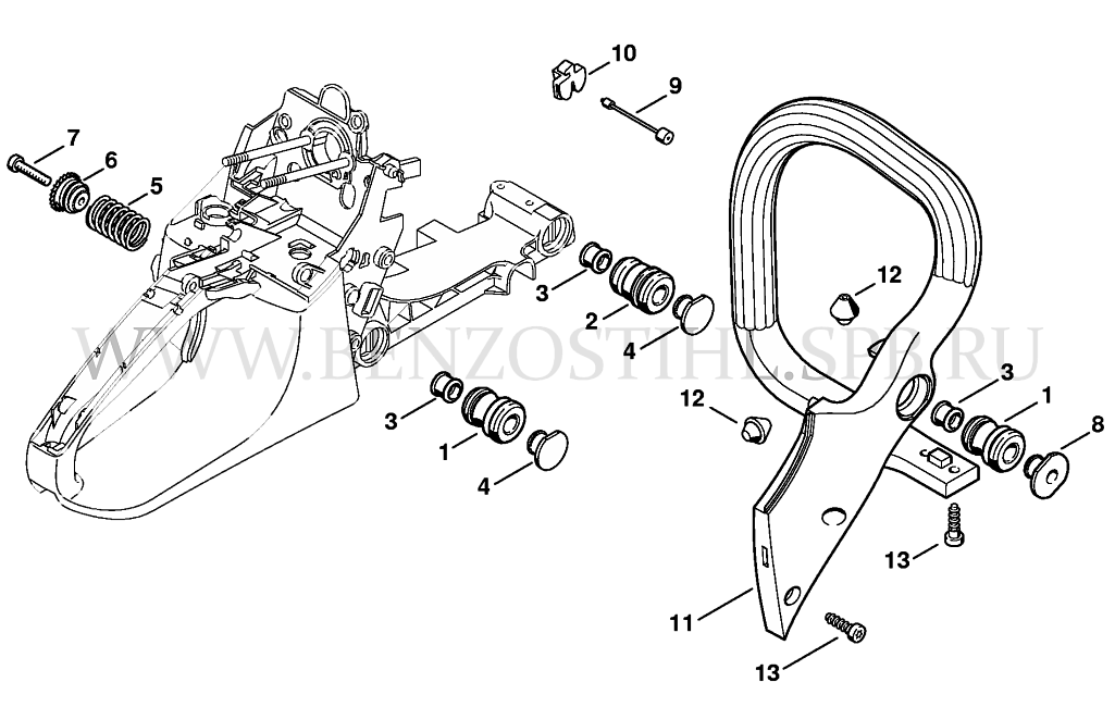 MS 280 I Антивибрационная система - Трубчатая рукоятка ремонт, запчасти, сервисное обслуживание.