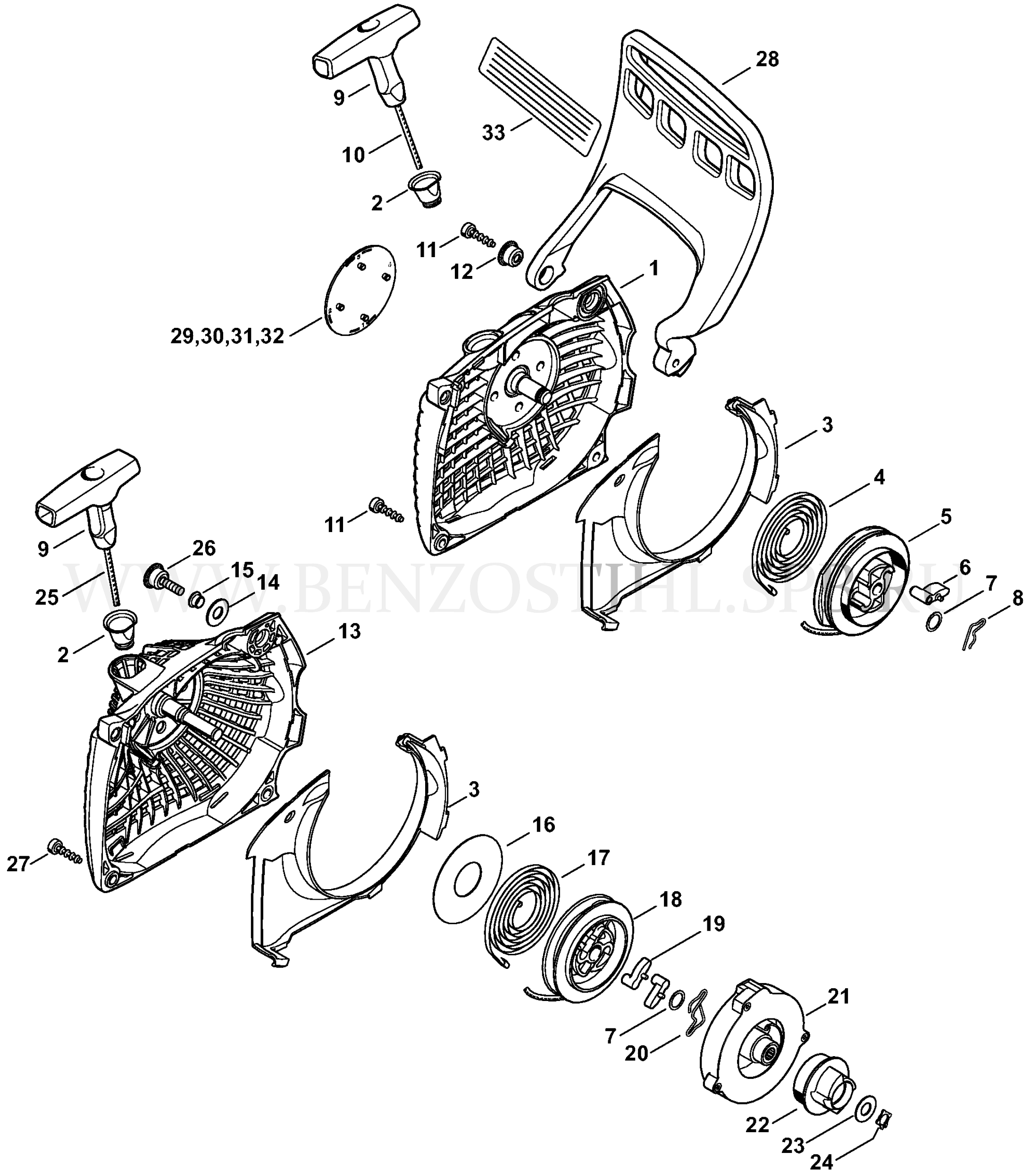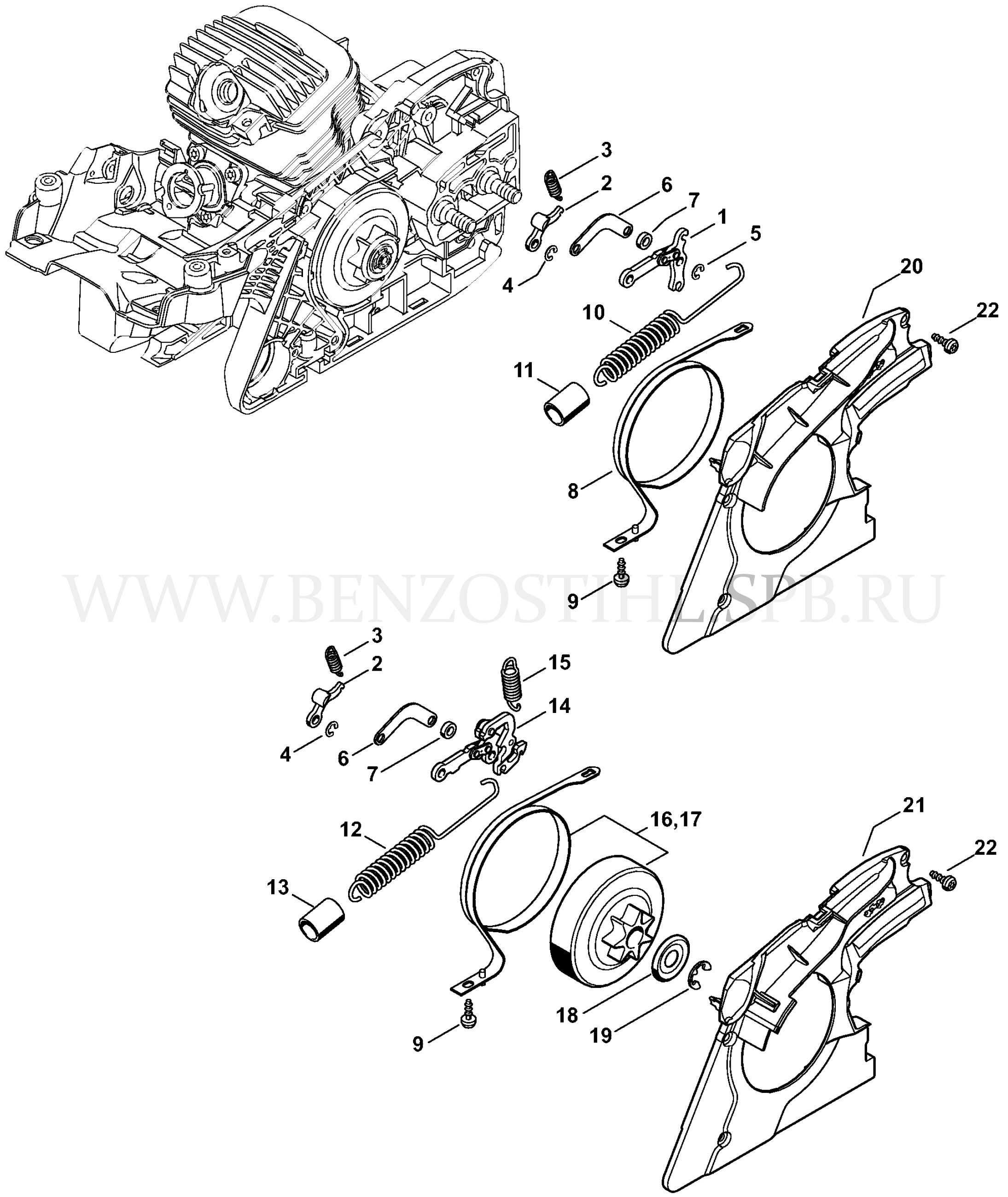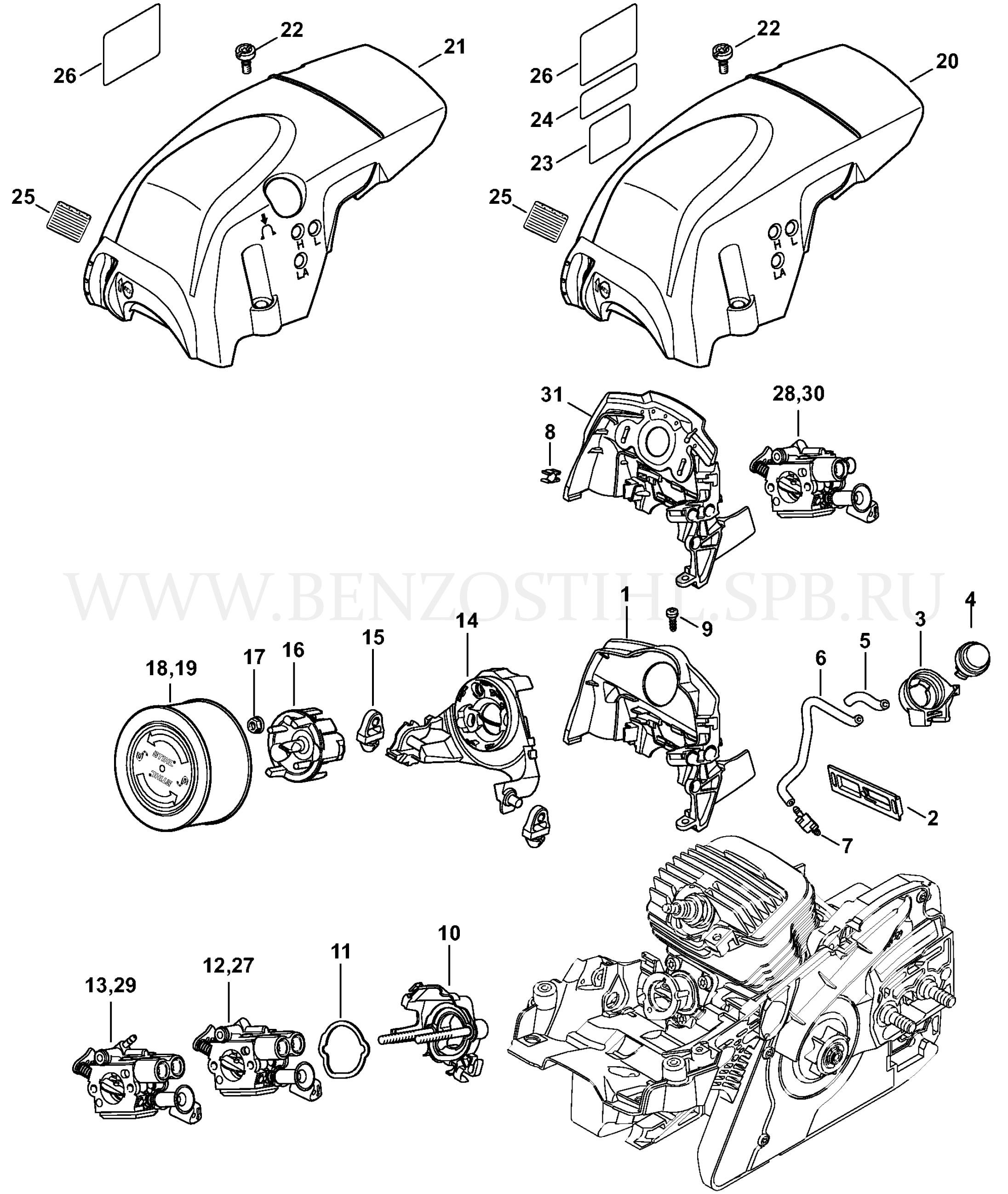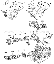 MS 291 Карбюратор, Воздушный фильтр, Кожух
