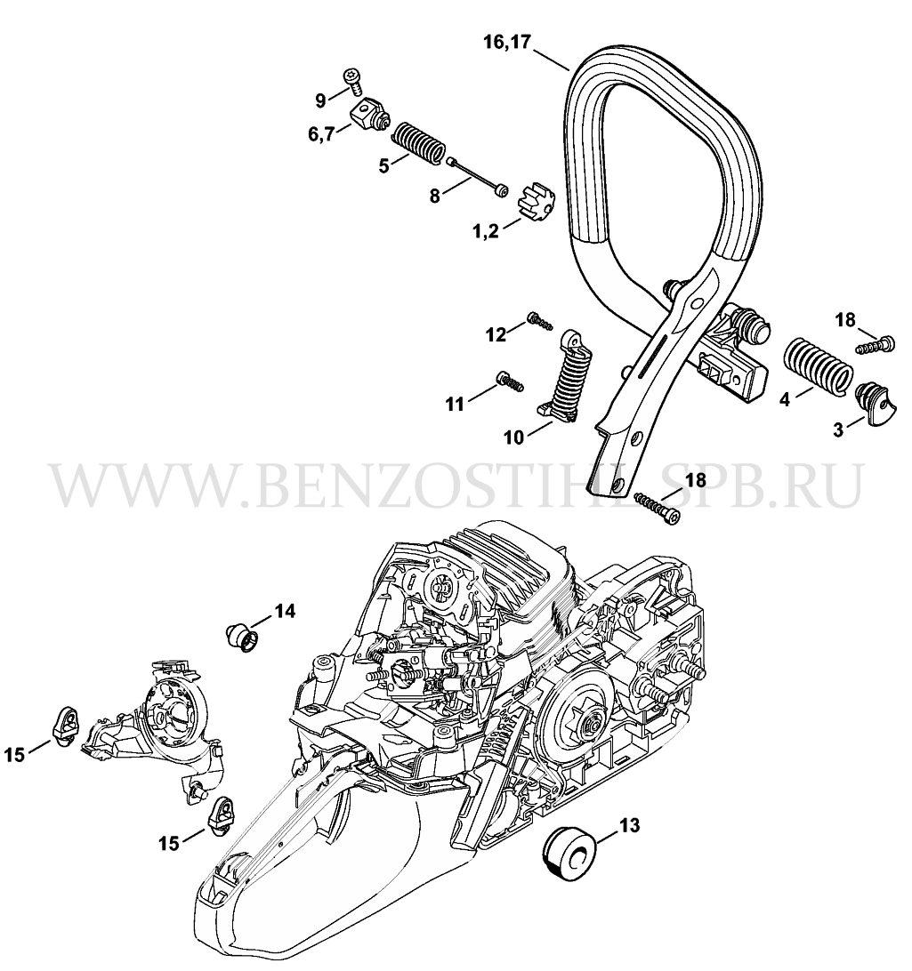 MS 291  Антивибрационная система - Трубчатая рукоятка