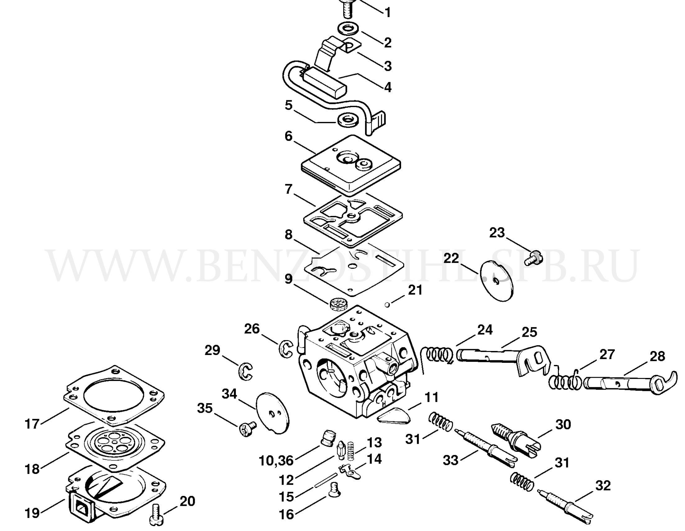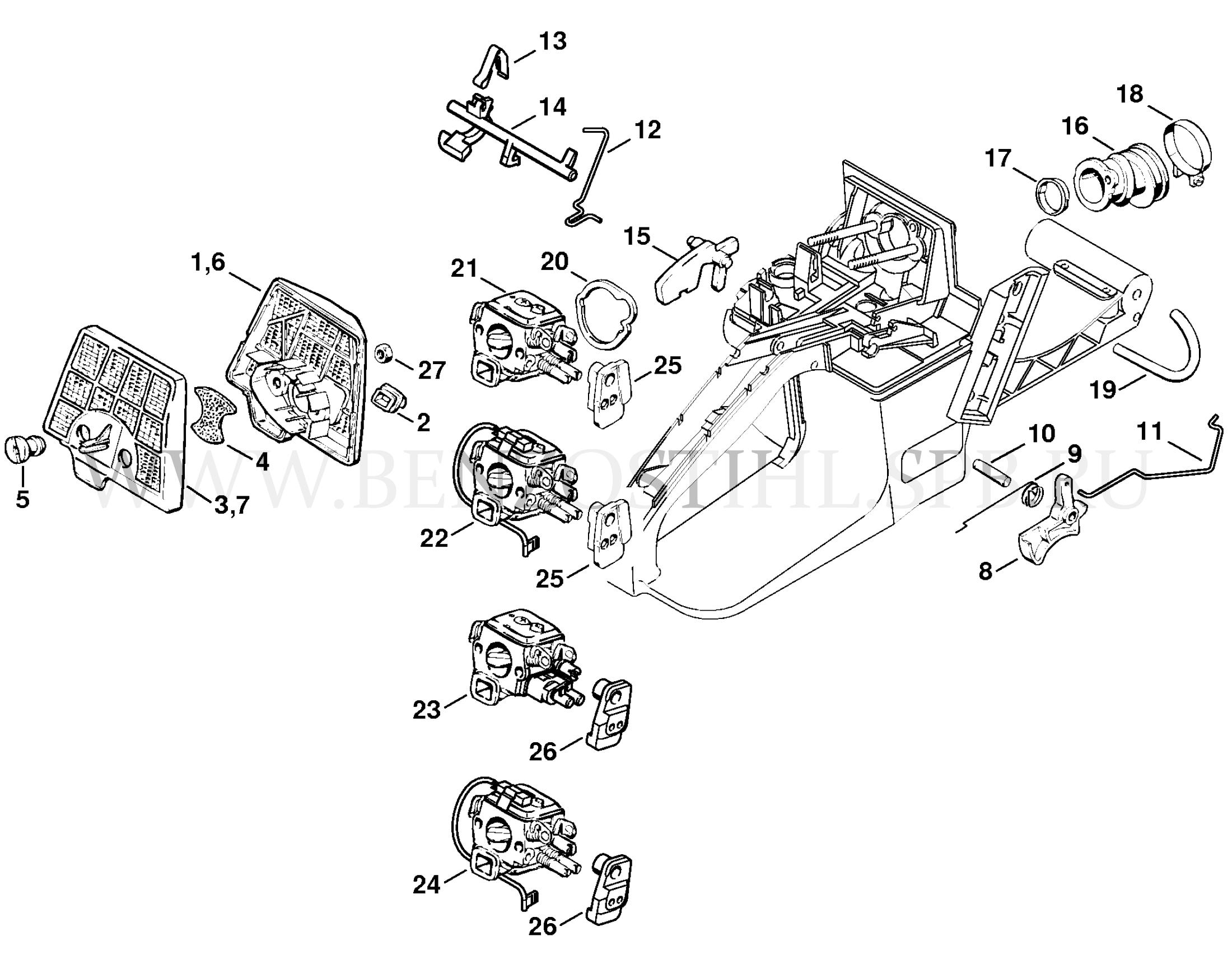 Воздушный фильтр, Устройство управления дроссельной заслонкой - Карбюратор MS 360