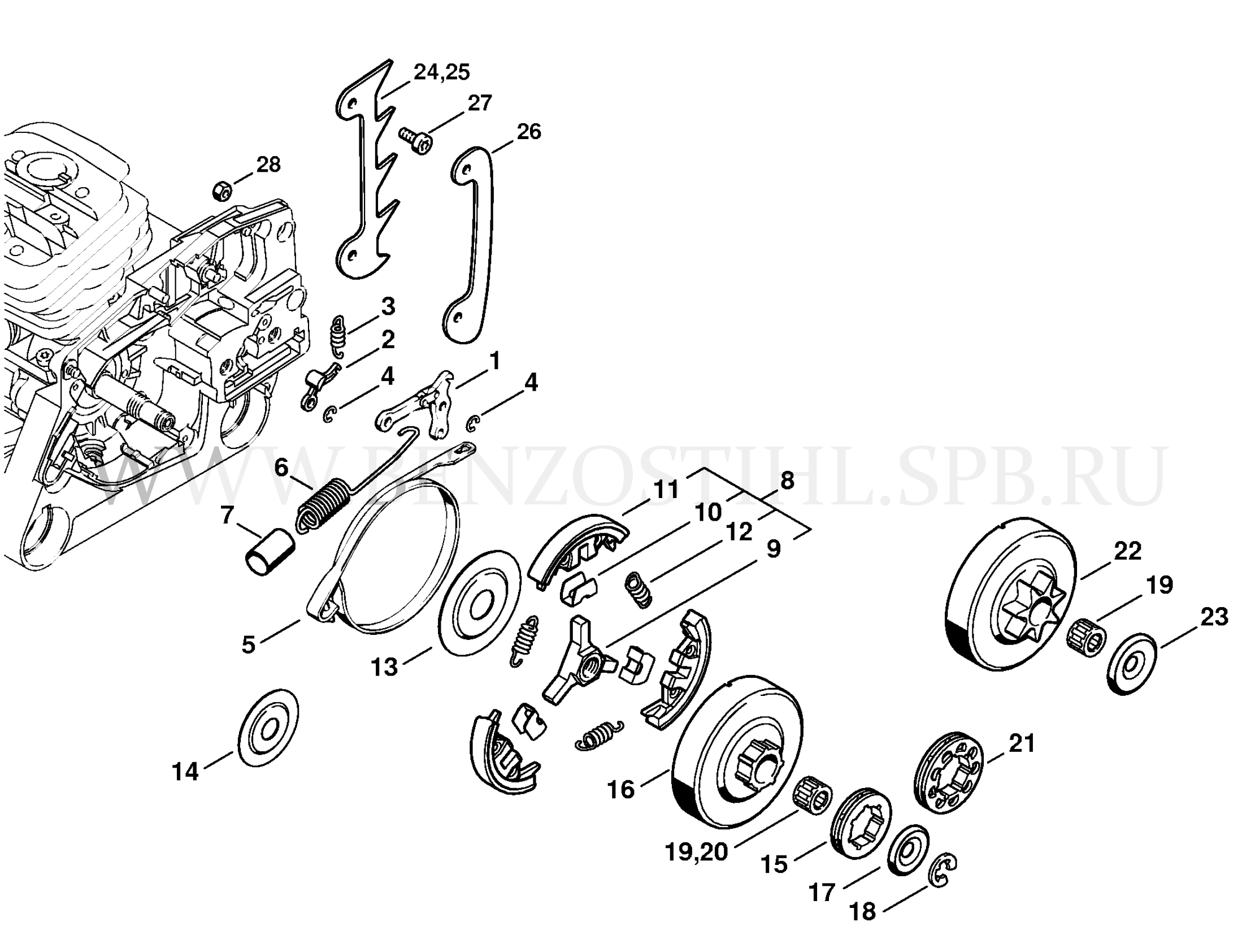 Тормоз пильной цепи - Муфта сцепления MS 360