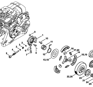 Mасляный насос - Муфта сцепления, ведущая звездочка MS 361, MS 361 C