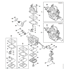 14 | Карбюратор 1140/16, 1140/15 | MS 362 C-M | M-Tronic | Бензопила STIHL | Запчасти по России | Сервисное обслуживание