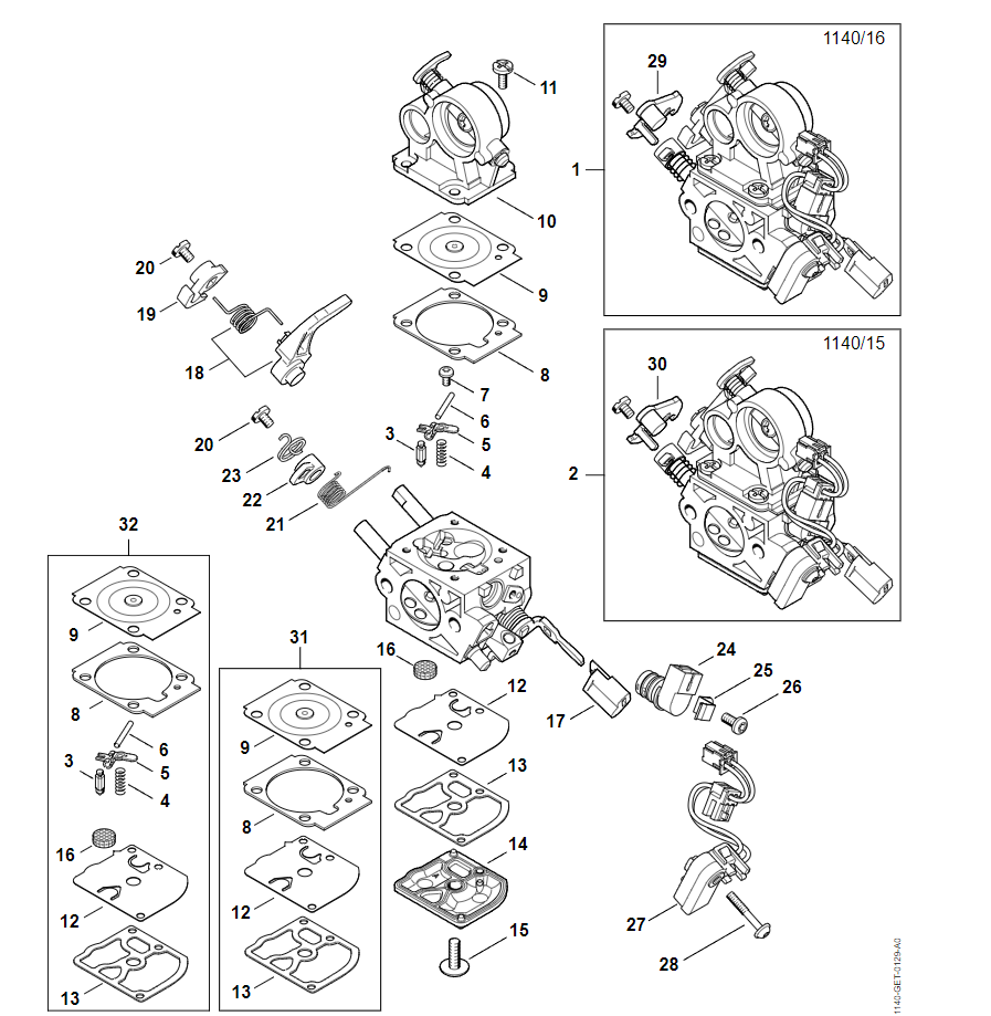 14 | Карбюратор 1140/16, 1140/15 | MS 362 C-M VW | M-Tronic | Бензопила STIHL | Запчасти по России | Сервисное обслуживание