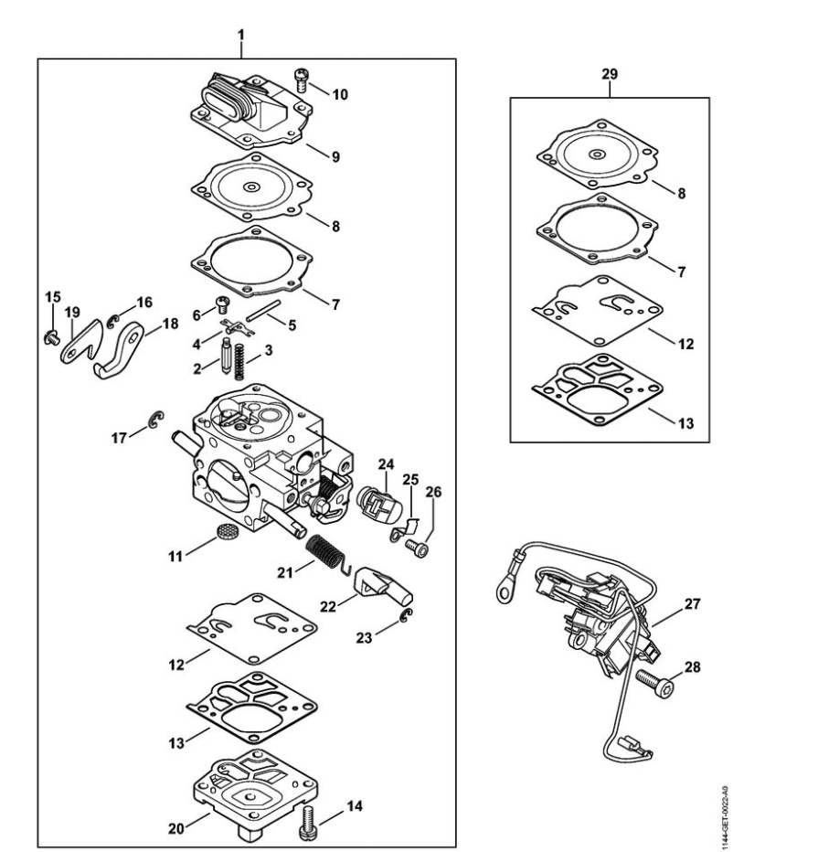 12 | Карбюратор WJ-140 | MS 661 C-M | M-Tronic | Бензопила STIHL | Запчасти по России | Сервисное обслуживание