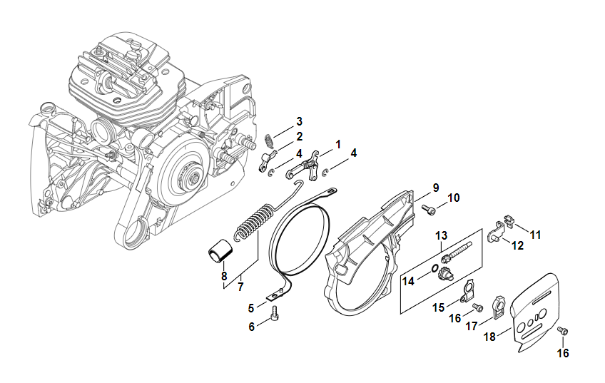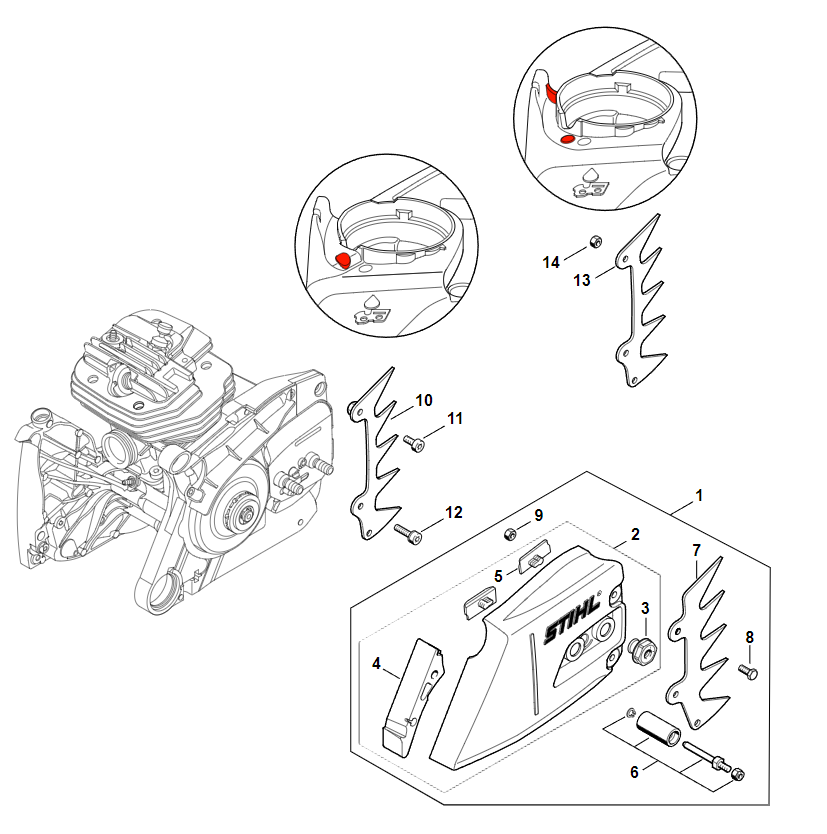 6 | Тормоз пильной цепи, Натяжное устройство цепи | MS 661 C-M | M-Tronic | Бензопила STIHL | Запчасти по России | Сервисное обслуживание