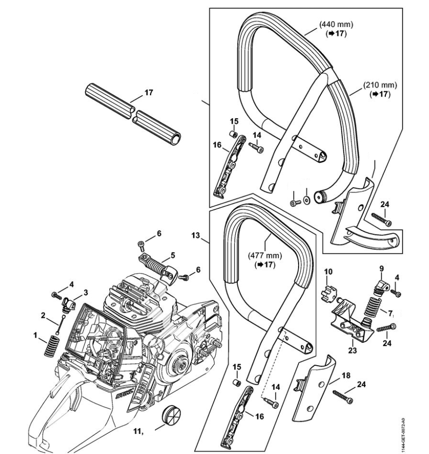 15 | Антивибрационная система - Трубчатая рукоятка | MS 661 C-M | M-Tronic | Бензопила STIHL | Запчасти по России | Сервисное обслуживание