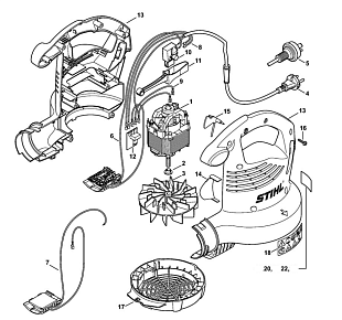 1 | BGE 81: Электродвигатель - Корпус вентилятора | BGE 81 | Воздуходув STIHL | Запчасти по России | Сервисное обслуживание