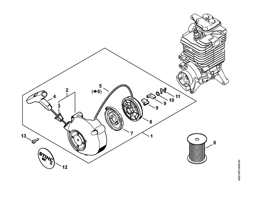 6 | Пусковое устройство | BR 550 | Воздуходувка STIHL | Запчасти по России и СПБ | Сервисное обслуживание