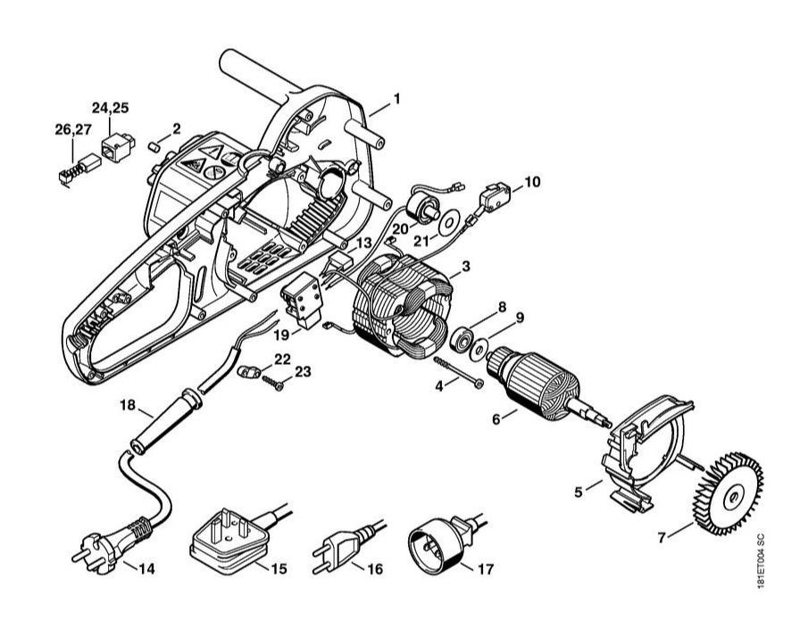 1 | Электродвигатель | E 160 | Электропила STIHL | Запчасти по России | Сервисное обслуживание
