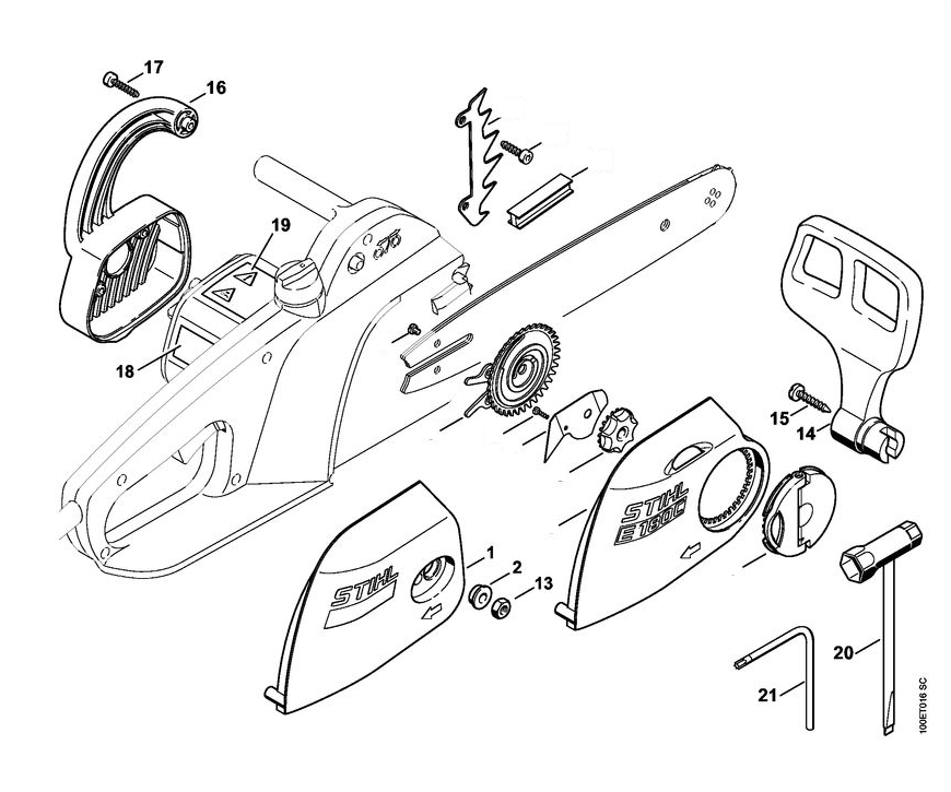 4 | Быстродействующее натяжное устройство цепи | E 160 | Электропила STIHL | Запчасти по России | Сервисное обслуживание