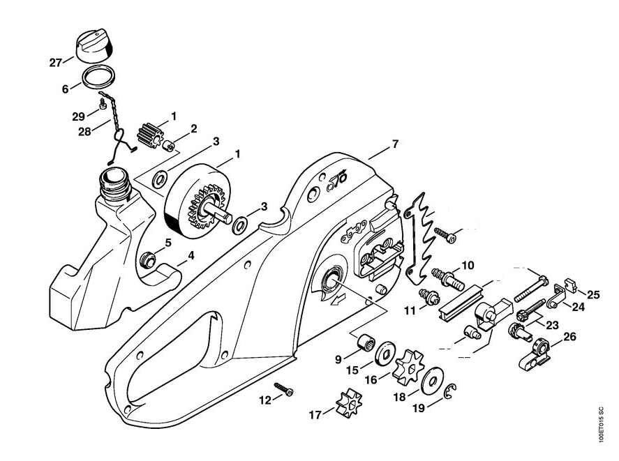 2 | Корпус передачи - Mасляный насос | E 160 | Электропила STIHL | Запчасти по России | Сервисное обслуживание